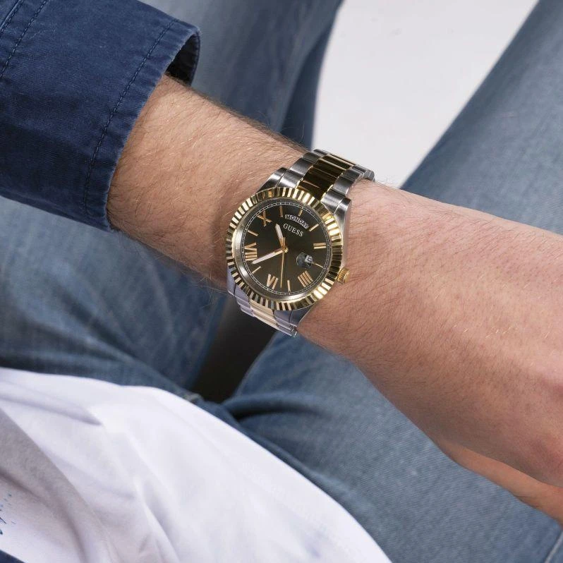 Мужские наручные часы Guess Steel GW0265G8. Точный кварцевый механизм с аналоговой индикацией. Корпус изготовлен из высококачественной нержавеющей стали 316L с высокими антикоррозийными свойствами. На стрелки и отметки нанесен светонакопительный состав, благодаря этому считывать информацию с циферблата возможно и в темноте. На циферблате отображается текущее число месяца и день недели. Браслет из нержавеющей стали. Прочное, устойчивое к царапинам минеральное стекло защищает часы от повреждений. Часы являются водонепроницаемыми до 5 Бар. Цвет корпуса: Серебристый. Цвет циферблата: Зеленый. Ширина (с заводной головкой): 44мм. Толщина: 10мм. Гарантия: 2 года.