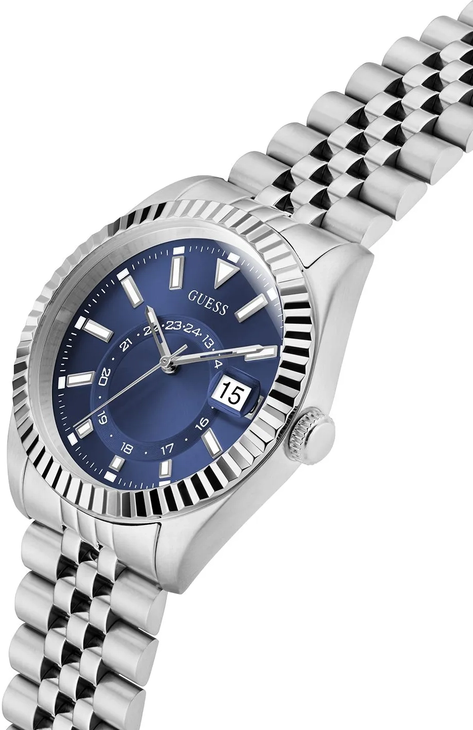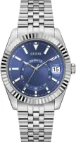 Мужские наручные часы Guess Dress GW0977G1. Точный кварцевый механизм с аналоговой индикацией. В отличие от механических часов, не требуют завода и работают от батареи, показывая отклонение всего несколько секунд в месяц. На стрелки и отметки нанесен светонакопительный состав, благодаря этому считывать информацию с циферблата возможно и в темноте. Браслет из нержавеющей стали обладает высокой прочностью и износостойкостью, обеспечивая долговечность даже при активной эксплуатации. Материал устойчив к коррозии и сохраняет свой внешний вид надолго. Отображение времени возможно в 12-часовом или 24-часовом формате. Корпус изготовлен из высококачественной нержавеющей стали 316L с высокими антикоррозийными свойствами. Прочное, устойчивое к царапинам минеральное стекло защищает часы от повреждений. Часы являются водонепроницаемыми до 5 Бар. Цвет корпуса: Серебристый. Цвет циферблата: Синий. Высота (с ушками): 42 мм. Толщина: 11 мм. Гарантия: 2 года.