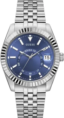 Мужские наручные часы Guess Trend GW0782G3. Точный кварцевый механизм с аналоговой индикацией. В отличие от механических часов, не требуют завода и работают от батареи, показывая отклонение всего несколько секунд в месяц. На стрелки и отметки нанесен светонакопительный состав, благодаря этому считывать информацию с циферблата возможно и в темноте. Браслет из нержавеющей стали обладает высокой прочностью и износостойкостью, обеспечивая долговечность даже при активной эксплуатации. Материал устойчив к коррозии и сохраняет свой внешний вид надолго. Корпус изготовлен из высококачественной нержавеющей стали 316L с высокими антикоррозийными свойствами. Прочное, устойчивое к царапинам минеральное стекло защищает часы от повреждений. Часы являются водонепроницаемыми до 5 Бар. Цвет корпуса: Серебристый. Цвет циферблата: Синий. Высота (с ушками): 44 мм. Толщина: 10 мм. Гарантия: 2 года.