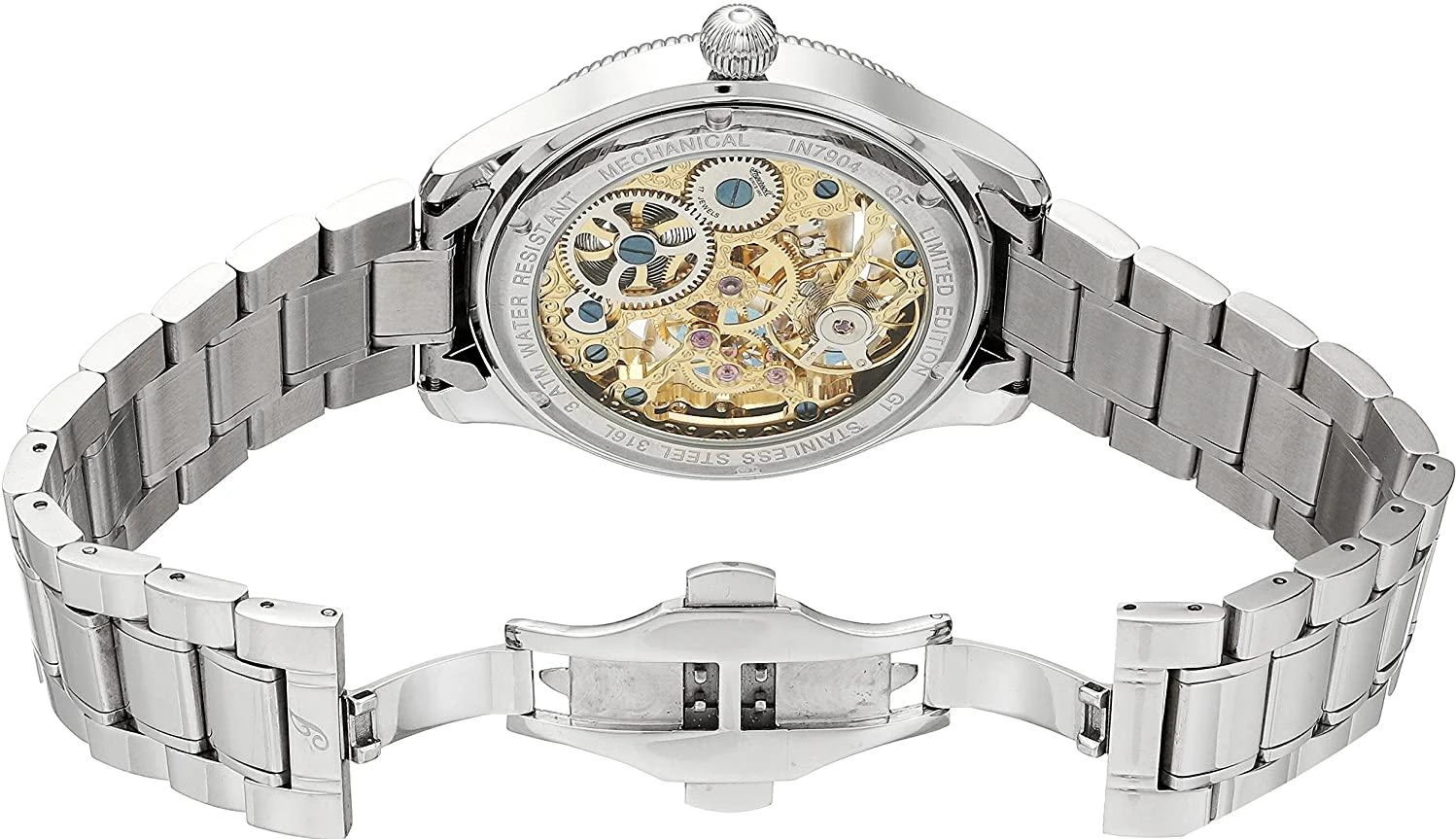 Мужские наручные часы Ingersoll 1892 IN7904WHGMB. Механические с автоподзаводом. Пружина механизма заводится автоматически благодаря естественным движениям владельца в процессе ежедневной носки часов. Корпус изготовлен из высококачественной нержавеющей стали 316L с высокими антикоррозийными свойствами. Браслет из нержавеющей стали. Прочное, устойчивое к царапинам минеральное стекло защищает часы от повреждений. Часы являются водонепроницаемыми до 5 Бар. Ширина (с заводной головкой): 46мм. Толщина: 15мм. Гарантия: 2 года.