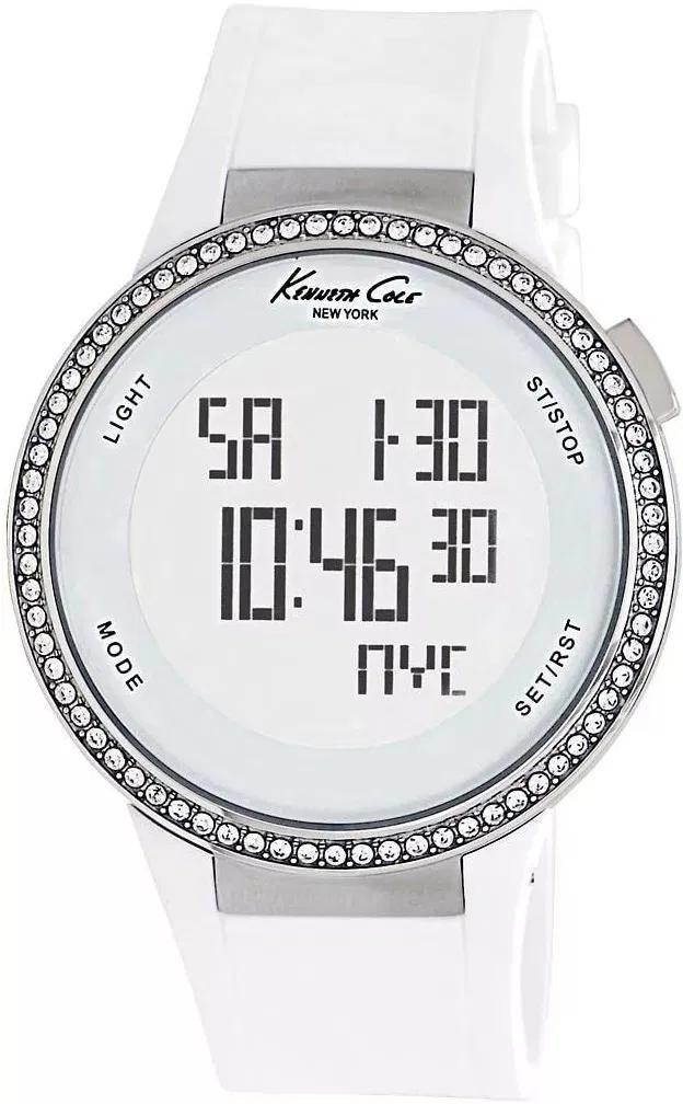 Женские наручные часы Kenneth Cole Steel KC2698. Точный кварцевый механизм с цифровой индикацией. Корпус изготовлен из высококачественной нержавеющей стали 316L с высокими антикоррозийными свойствами. Светодиодная подсветка. На циферблате отображается текущее число, месяц и день недели. Функция хронографа. Ремешок изготовлен из каучука. Прочное, устойчивое к царапинам минеральное стекло защищает часы от повреждений. Часы являются водонепроницаемыми до 3 Бар. Цвет корпуса: Серебристый. Цвет циферблата: Серый. Ширина (с заводной головкой): 44мм. Толщина: 11мм. Гарантия: 2 года.