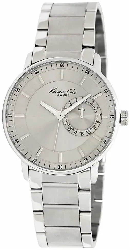 Мужские наручные часы Kenneth Cole Steel KC9104. Точный кварцевый механизм с аналоговой индикацией. Корпус изготовлен из высококачественной нержавеющей стали 316L с высокими антикоррозийными свойствами. На стрелки и отметки нанесен светонакопительный состав, благодаря этому считывать информацию с циферблата возможно и в темноте. На циферблате отображается текущее число месяца. Браслет из нержавеющей стали. Прочное, устойчивое к царапинам минеральное стекло защищает часы от повреждений. Часы являются водонепроницаемыми до 3 Бар. Цвет корпуса: Серый. Цвет циферблата: Серый. Ширина (с заводной головкой): 42мм. Толщина: 12мм. Гарантия: 2 года.