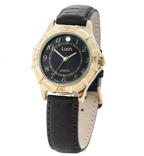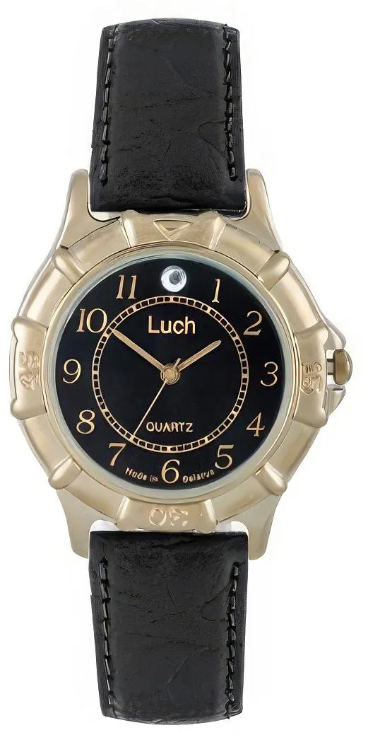 Мужские наручные часы Луч Классика 376847192. Точный кварцевый механизм с аналоговой индикацией. Корпус изготовлен из высококачественной нержавеющей стали 316L с высокими антикоррозийными свойствами. На стрелки и отметки нанесен светонакопительный состав, благодаря этому считывать информацию с циферблата возможно и в темноте. Ремешок изготовлен из кожи. Прочное, устойчивое к царапинам минеральное стекло защищает часы от повреждений. Часы являются водонепроницаемыми до 3 Бар. Цвет корпуса: Желтое золото. Цвет циферблата: Черный. Ширина (с заводной головкой): 44мм. Толщина: 7мм. Гарантия: 2 года.