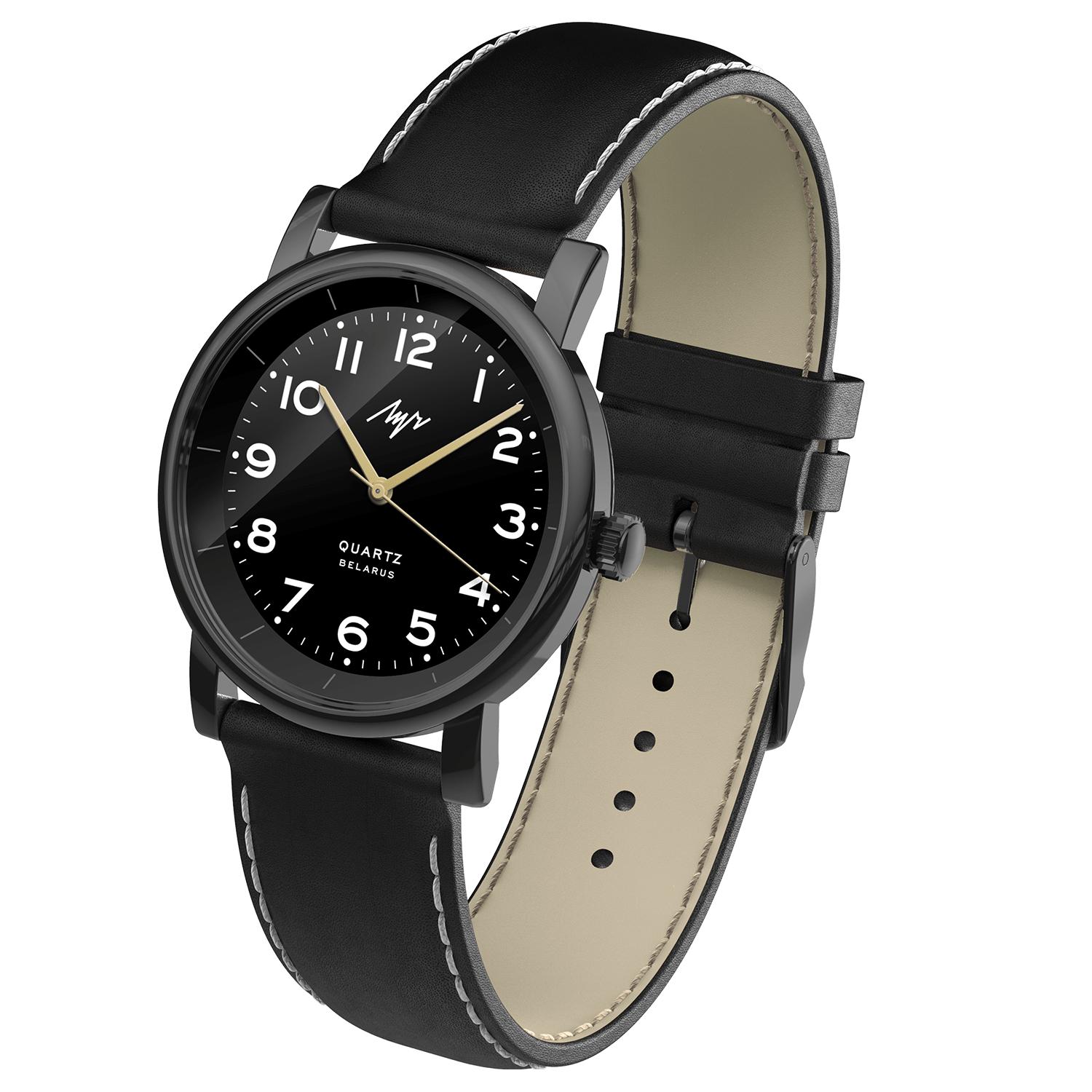 Мужские наручные часы Luch Luch Basic 778449383. Точный кварцевый механизм с аналоговой индикацией. Корпус изготовлен из высококачественной нержавеющей стали 316L с высокими антикоррозийными свойствами. Ремешок изготовлен из кожи. Прочное, устойчивое к царапинам минеральное стекло защищает часы от повреждений. Часы являются водонепроницаемыми до 3 Бар. Цвет корпуса: Черный. Цвет циферблата: Черный. Ширина (с заводной головкой): 38мм. Толщина: 9мм. Гарантия: 2 года.
