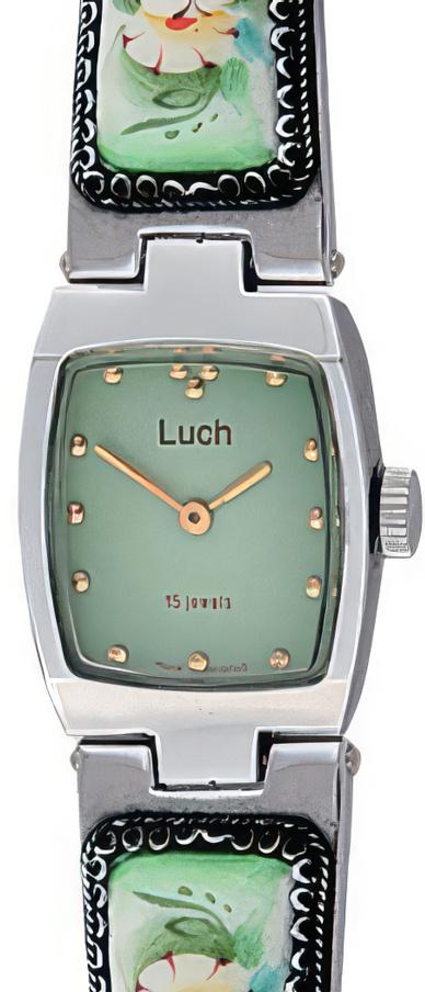 Женские наручные часы Luch Нюд 18501316. Механические с ручным подзаводом. Завод осуществляется через систему шестерней, передающих вращение с головки на заводной барабан. Механизм включает предохранительную систему, предотвращающую перезавод главной пружины.Латунный браслет. Корпус изготовлен из высококачественной часовой латуни с высокими антикоррозийными свойствами. Органическое стекло. Часы являются водонепроницаемыми до 3 Бар. Цвет корпуса: Серебристый. Цвет циферблата: Зеленый. Толщина: 8 мм. Гарантия: 2 года.