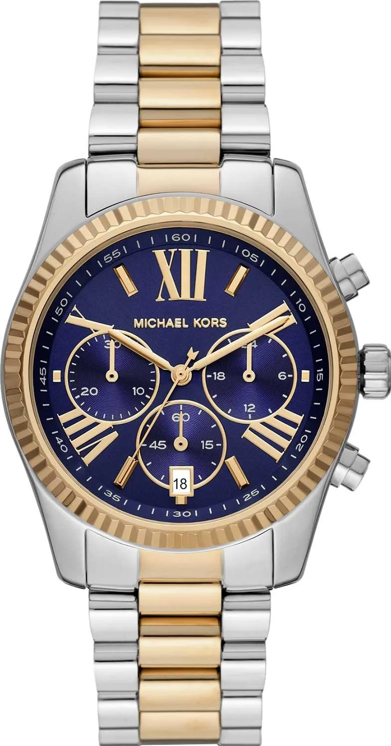 Женские наручные часы Michael Kors Lexington MK7218. Точный кварцевый механизм с аналоговой индикацией. Корпус изготовлен из высококачественной нержавеющей стали 316L с высокими антикоррозийными свойствами. На циферблате отображается текущее число месяца. Функция хронографа. Отображение времени возможно в 12-часовом или 24-часовом формате. Браслет из нержавеющей стали. Прочное, устойчивое к царапинам минеральное стекло защищает часы от повреждений. Часы являются водонепроницаемыми до 10 Бар. Цвет корпуса: Серебристый. Цвет циферблата: Синий. Ширина (с заводной головкой): 38мм. Толщина: 12мм. Гарантия: 2 года.