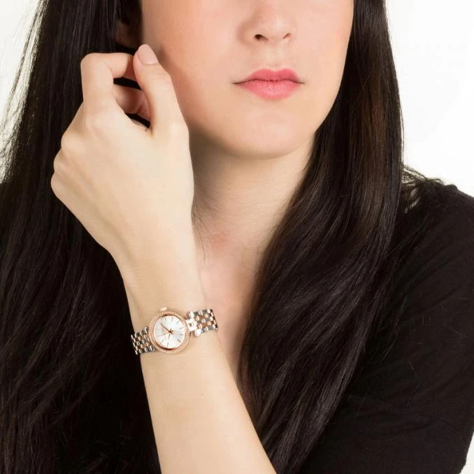 Женские наручные часы Michael Kors Silver-Tone MK3298. Точный кварцевый механизм с аналоговой индикацией. Корпус изготовлен из высококачественной нержавеющей стали 316L с высокими антикоррозийными свойствами. Браслет из нержавеющей стали. Прочное, устойчивое к царапинам минеральное стекло защищает часы от повреждений. Часы являются водонепроницаемыми до 5 Бар. Цвет корпуса: Розовое золото. Ширина (с заводной головкой): 26мм. Толщина: 6мм. Гарантия: 2 года.