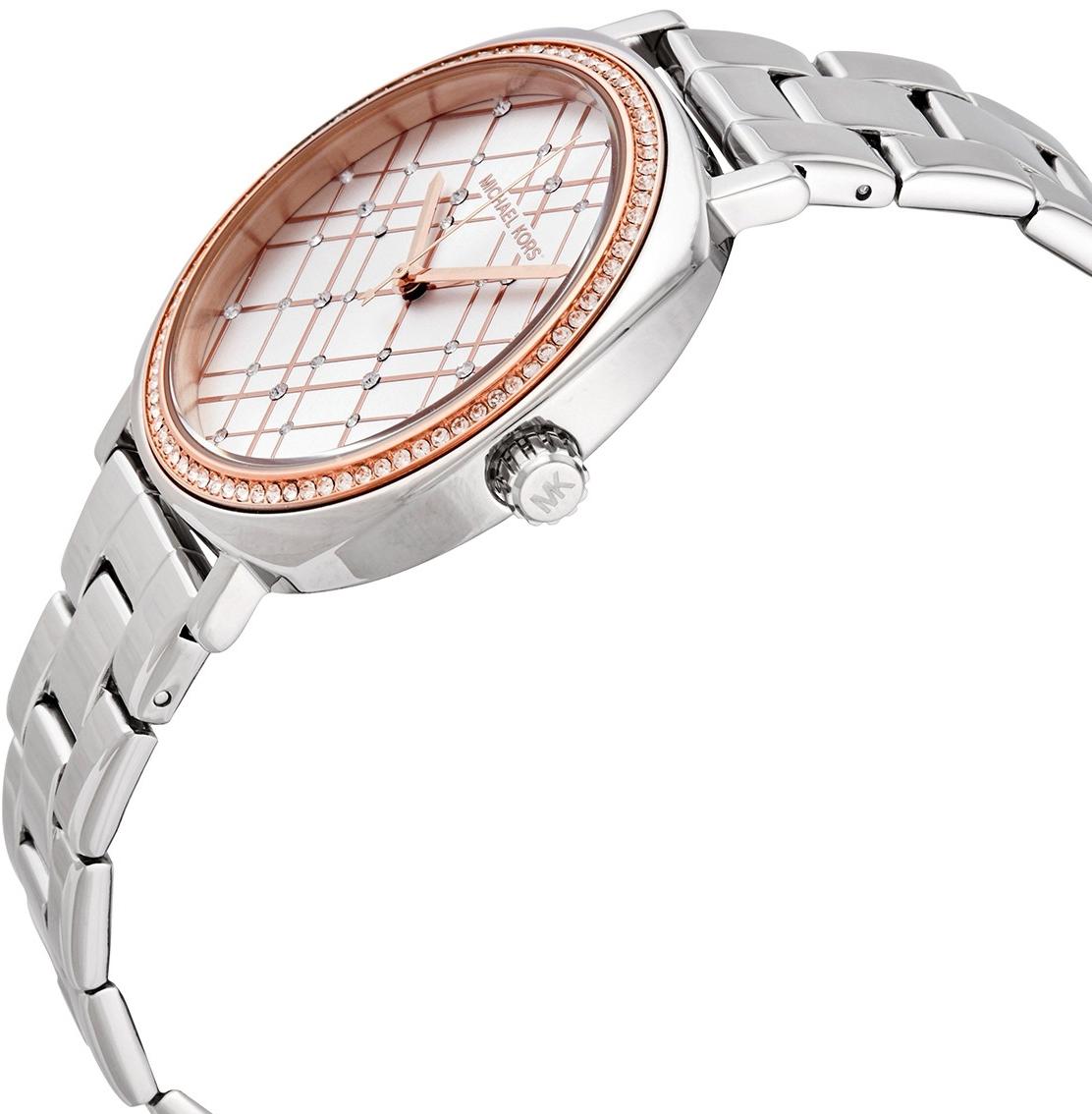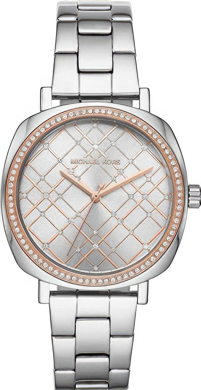 Женские наручные часы Michael Kors Silver-Tone MK3988. Точный кварцевый механизм с аналоговой индикацией. Браслет из нержавеющей стали. Браслет из нержавеющей стали. Прочное, устойчивое к царапинам минеральное стекло защищает часы от повреждений. Часы являются водонепроницаемыми до 5 Бар. Цвет циферблата: Серебристый. Цвет циферблата: Розовое золото. Цвет корпуса: Серебристый. Толщина: 9 мм. Гарантия: 2 года.
