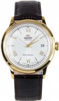 Мужские наручные часы Orient Automatic FAC00007W. Автоматические с ручным подзаводом. Пружина механизма заводится автоматически благодаря естественным движениям владельца в процессе ежедневной носки часов. Также есть возможность ручного завода. Корпус изготовлен из высококачественной нержавеющей стали 316L с высокими антикоррозийными свойствами. На циферблате отображается текущее число месяца. Ремешок изготовлен из кожи. Прочное, устойчивое к царапинам минеральное стекло защищает часы от повреждений. Часы являются водонепроницаемыми до 3 Бар. Цвет корпуса: Желтое золото. Цвет циферблата: Белый. Ширина (с заводной головкой): 41мм. Толщина: 12мм. Гарантия: 2 года.