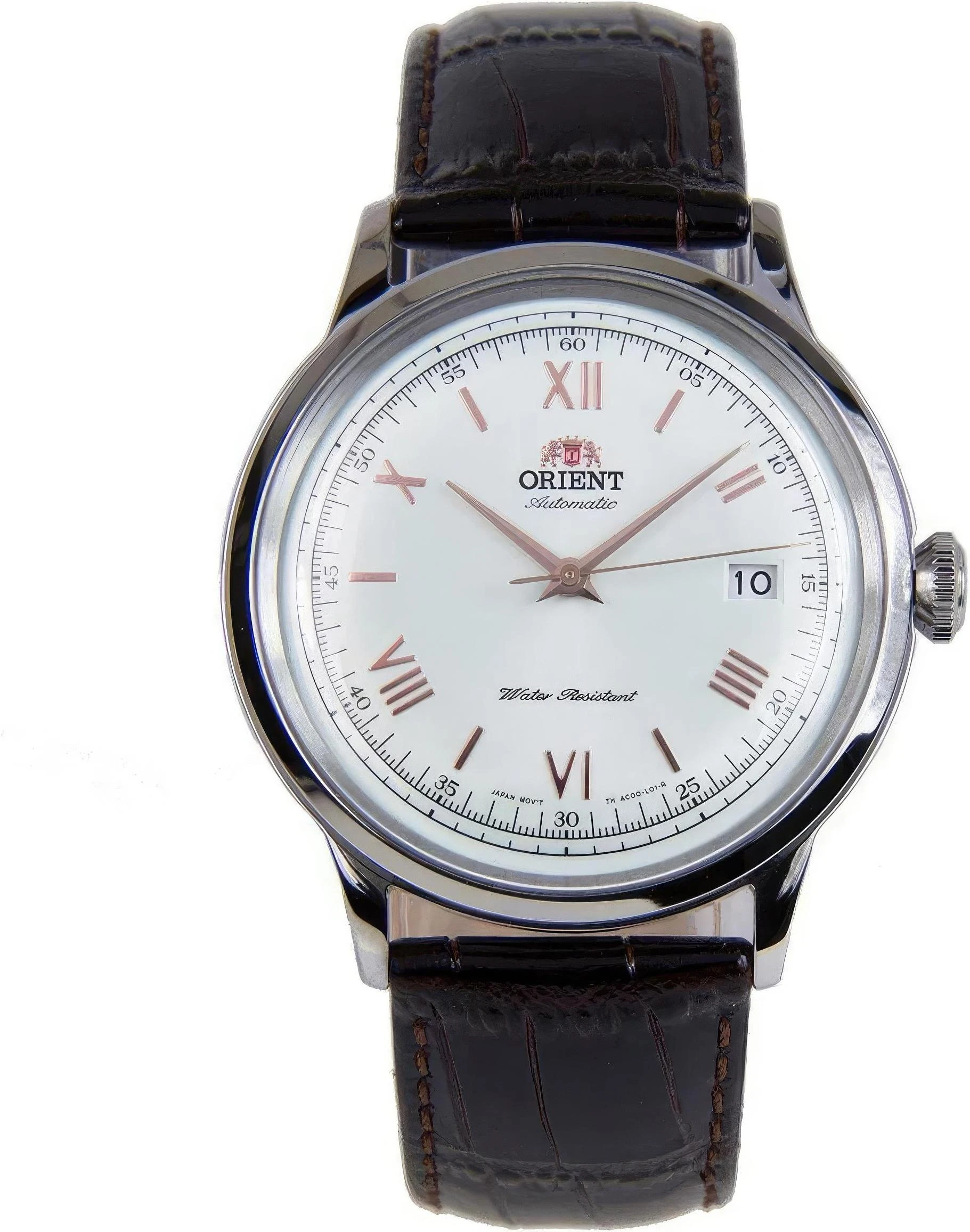Мужские наручные часы с автоподзаводом на коричневом кожаном ремешке. Окно даты в положении 3 часа. Центральные секундная, минутная и часовая позолоченные стрелки. Накладны римские цифры на белом циферблате в винтажном стиле. Минеральное стекло.