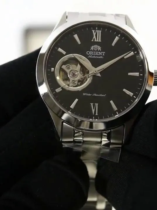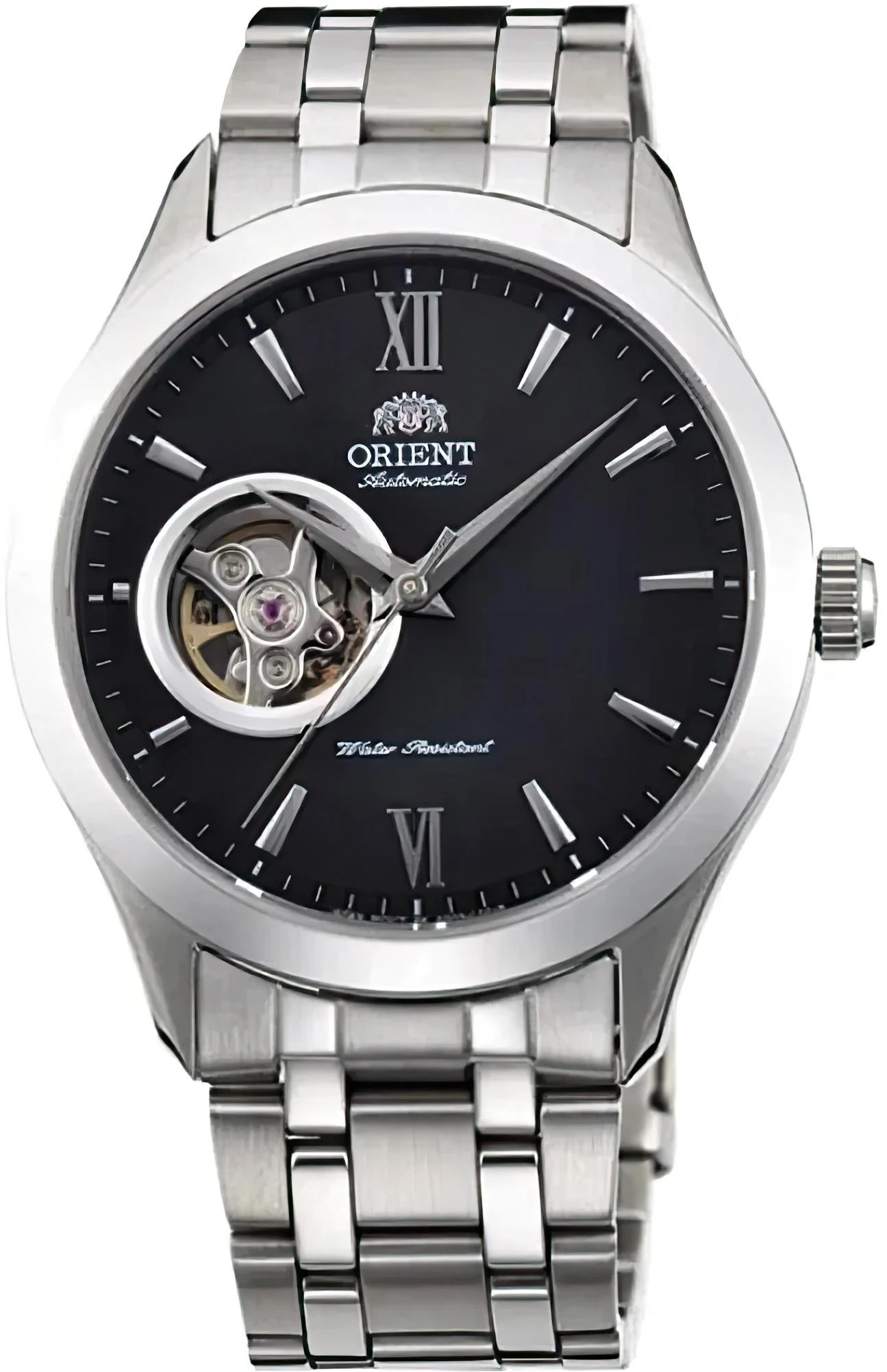 Автоматический механизм ORIENT (21 рубиновый камень, частота полуколебаний баланса 21600 полуоб/час. Автоподзавод. Противоударное устройство оси баланса.). Центральная секундная стрелка. Окошко даты. • Запас хода более 40 часов. • Точность хода не хуже -15...+25 сек./в сутки. • Сапфировое стекло устойчивое к возникновению царапин. • Корпус из высококачественного стального сплава 316L с высокими антикоррозийными свойствами. • Водозащита до 5 АТМ. • Браслет из нержавеющей стали. • Надежный браслетный замок с тройным сгибом.