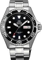 Мужские наручные часы Orient Automatic TAA02004B. Механические с автоподзаводом. Пружина механизма заводится автоматически благодаря естественным движениям владельца в процессе ежедневной носки часов. Браслет из нержавеющей стали. Корпус изготовлен из высококачественной нержавеющей стали 316L с высокими антикоррозийными свойствами. Прочное, устойчивое к царапинам минеральное стекло защищает часы от повреждений. На циферблате отображается текущее число месяца и день недели. Часы являются водонепроницаемыми до 20 Бар. Цвет циферблата: Серебристый. Цвет корпуса: Черный. Толщина: 12 мм. Гарантия: 2 года.