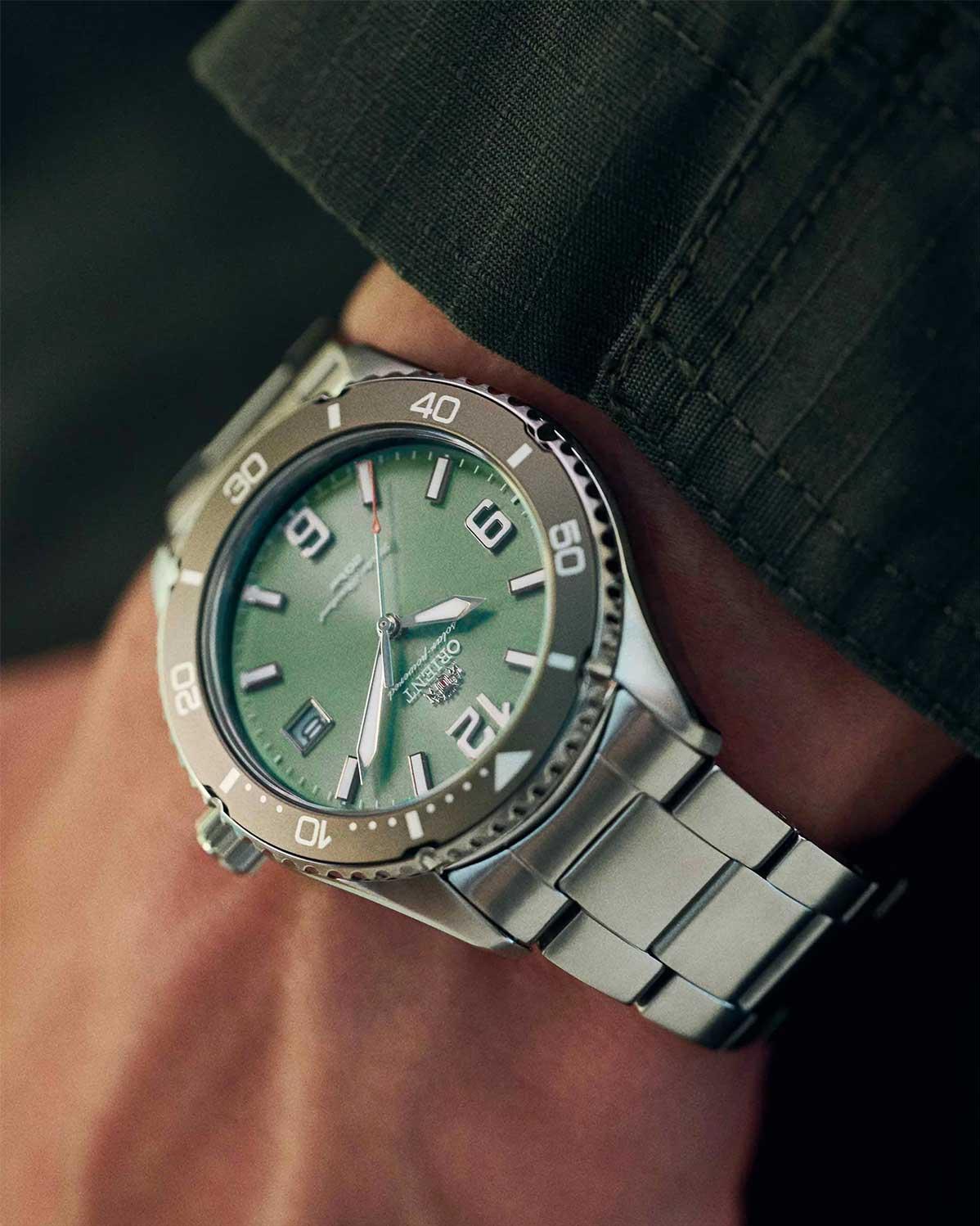 Мужские наручные часы Orient Casual RA-WJ0001E. Точный кварцевый механизм. Браслет из нержавеющей стали. Солнечная батарейка. Солнечная подзаряжающаяся батарейка обеспечивает питание часов для работы. Корпус изготовлен из высококачественной нержавеющей стали 316L с высокими антикоррозийными свойствами. Сапфировое стекло. Искусственно изготовленное стекло с высокой прочностью и устойчивостью к царапинам. На циферблате отображается текущее число месяца. Часы являются водонепроницаемыми до 20 Бар. Цвет циферблата: Серебристый. Цвет корпуса: Зеленый. Светодиодная подсветка. Толщина: 10 мм. Гарантия: 2 года.