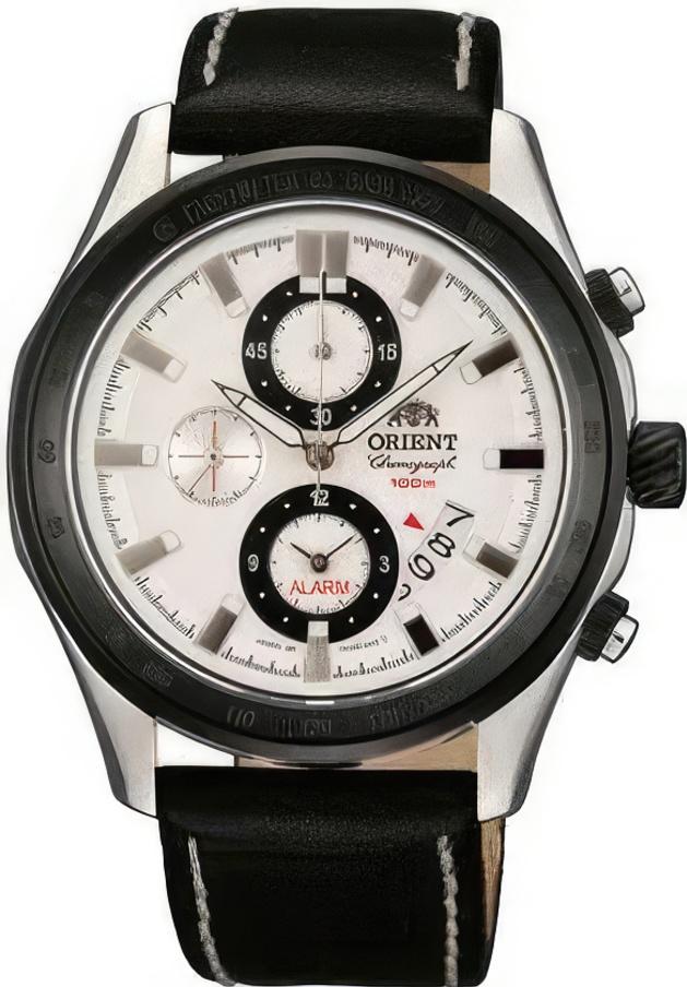 Мужские наручные часы, оснащённые хронографом с функцией секундомера в комбинированном корпусе, на кожаном ремешке.