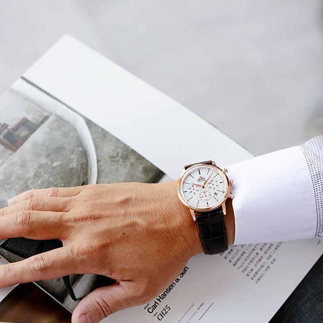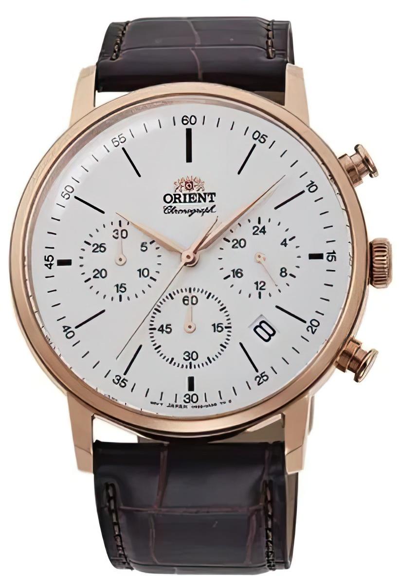 Кварцевый хронограф. Водостойкость WR 50. Часы, минуты, секунды. Хронограф. индикация даты. 12/24х часовой формат времени. Стрелки и метки с люминисцентным покрытием. Белый циферблат с часовыми индексами в виде штрихов и цифр. Корпус выполнен из нержавеющей стали с IP покрытием. Диаметр корпуса 42 мм, толщина 12 мм. Устойчивое к возникновению царапин минеральное стекло. Кожаный ремешок коричневого цвета. Стальная застежка.