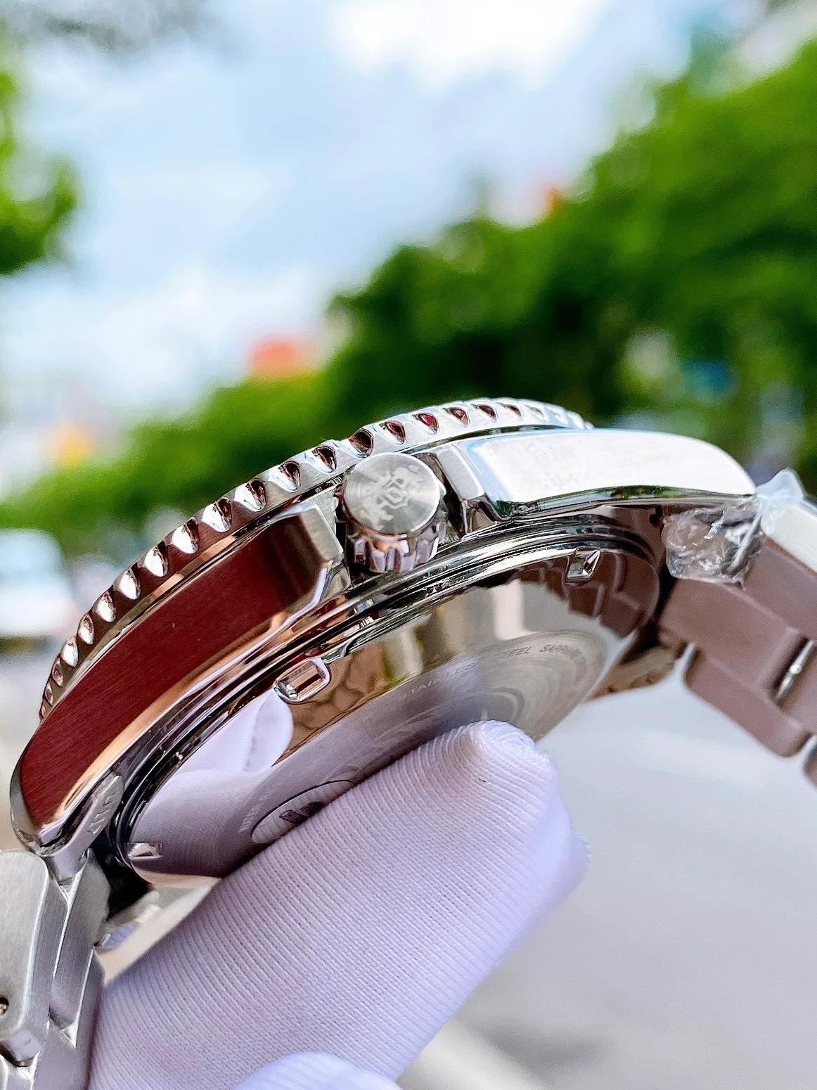 • Поворотный безель с лаковым покрытием черного цвета вращается щелчками против хода стрелок.