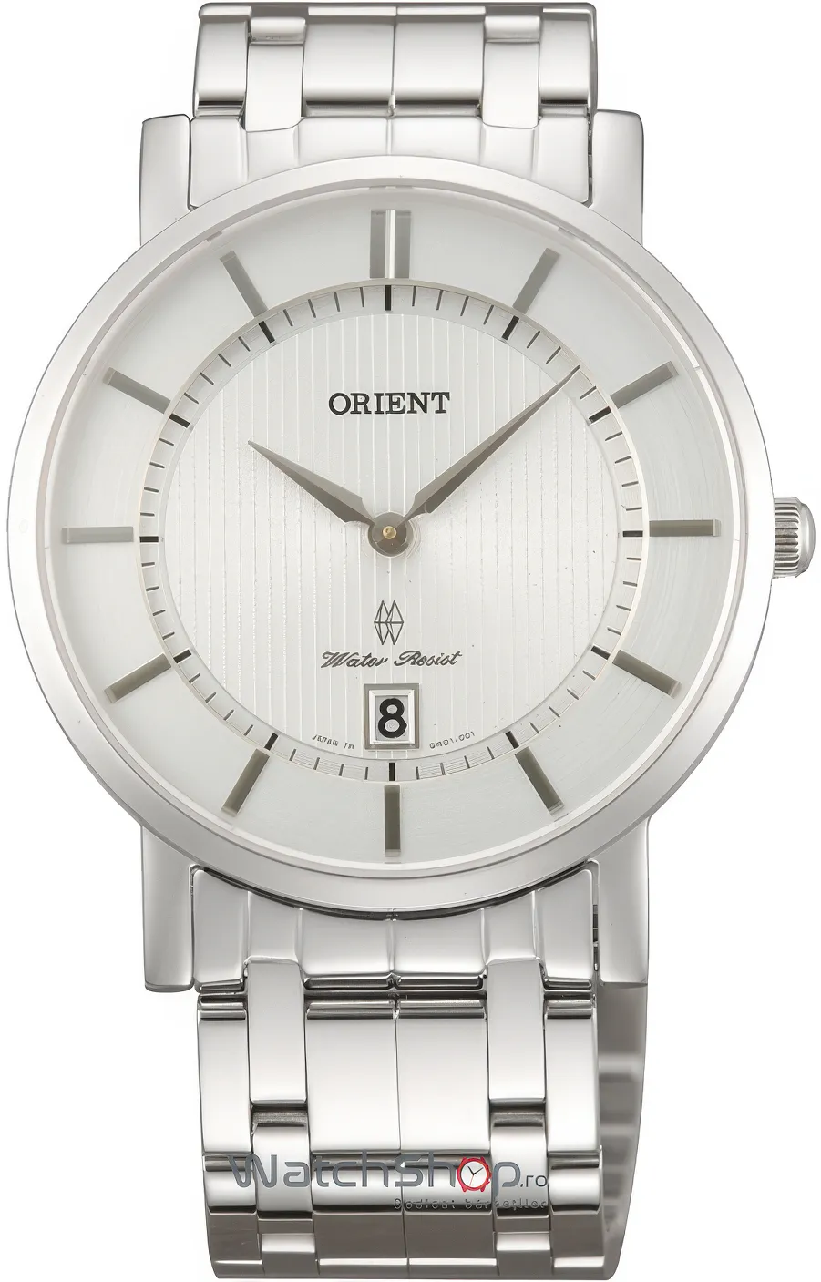 Мужские наручные часы Orient Dressy FGW01006W. Точный кварцевый механизм с аналоговой индикацией. Корпус изготовлен из высококачественной нержавеющей стали 316L с высокими антикоррозийными свойствами. На циферблате отображается текущее число месяца. Браслет из нержавеющей стали. Сапфировое стекло. Искусственно изготовленное стекло с высокой прочностью и устойчивостью к царапинам. Часы являются водонепроницаемыми до 5 Бар. Цвет корпуса: Серебристый. Цвет циферблата: Белый. Ширина (с заводной головкой): 38мм. Толщина: 7мм. Гарантия: 2 года.