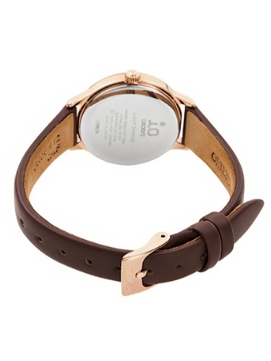 Женские наручные часы Orient IO RN-WG0410S. Точный кварцевый механизм с аналоговой индикацией. Ремешок изготовлен из кожи. Солнечная батарейка. Солнечная подзаряжающаяся батарейка обеспечивает питание часов для работы. Браслет из нержавеющей стали. Сапфировое стекло. Искусственно изготовленное стекло с высокой прочностью и устойчивостью к царапинам. На циферблате отображается текущее число месяца. Часы являются водонепроницаемыми до 5 Бар. Цвет циферблата: Желтое золото. Цвет корпуса: Белый. Толщина: 7 мм. Гарантия: 2 года.