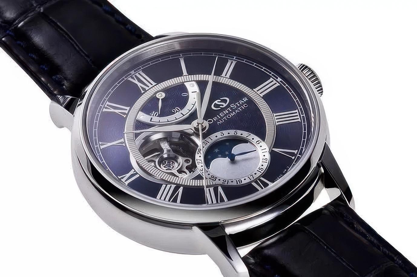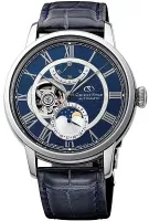 Мужские наручные часы Orient Orient Star RE-AM0002L. Механические с ручным подзаводом. Ремешок изготовлен из кожи. Индикатор запаса хода. Отображение фаз Луны. Часы определяют возраст Луны в текущий момент для текущего местоположения. Браслет из нержавеющей стали. Сапфировое стекло. Искусственно изготовленное стекло с высокой прочностью и устойчивостью к царапинам. На циферблате отображается текущее число месяца. Часы являются водонепроницаемыми до 5 Бар. Цвет циферблата: Серебристый. Цвет корпуса: Синий. Цвет корпуса: Серебристый. Толщина: 14 мм. Гарантия: 2 года.