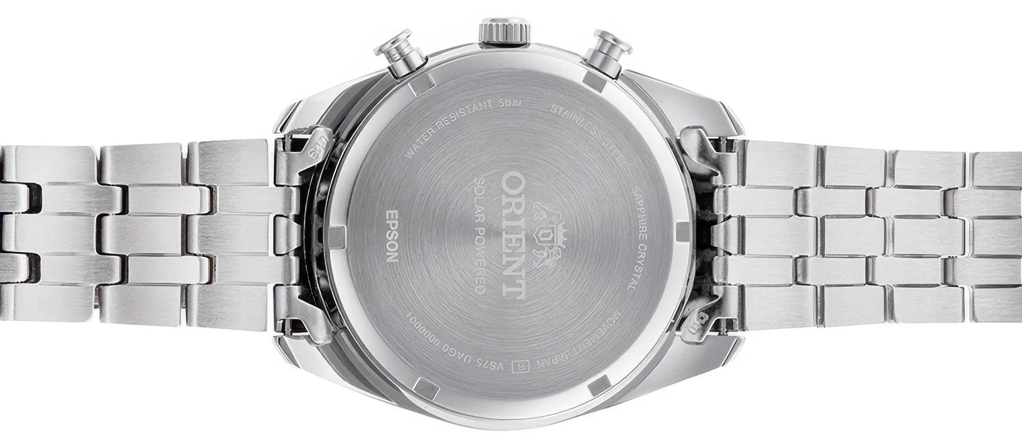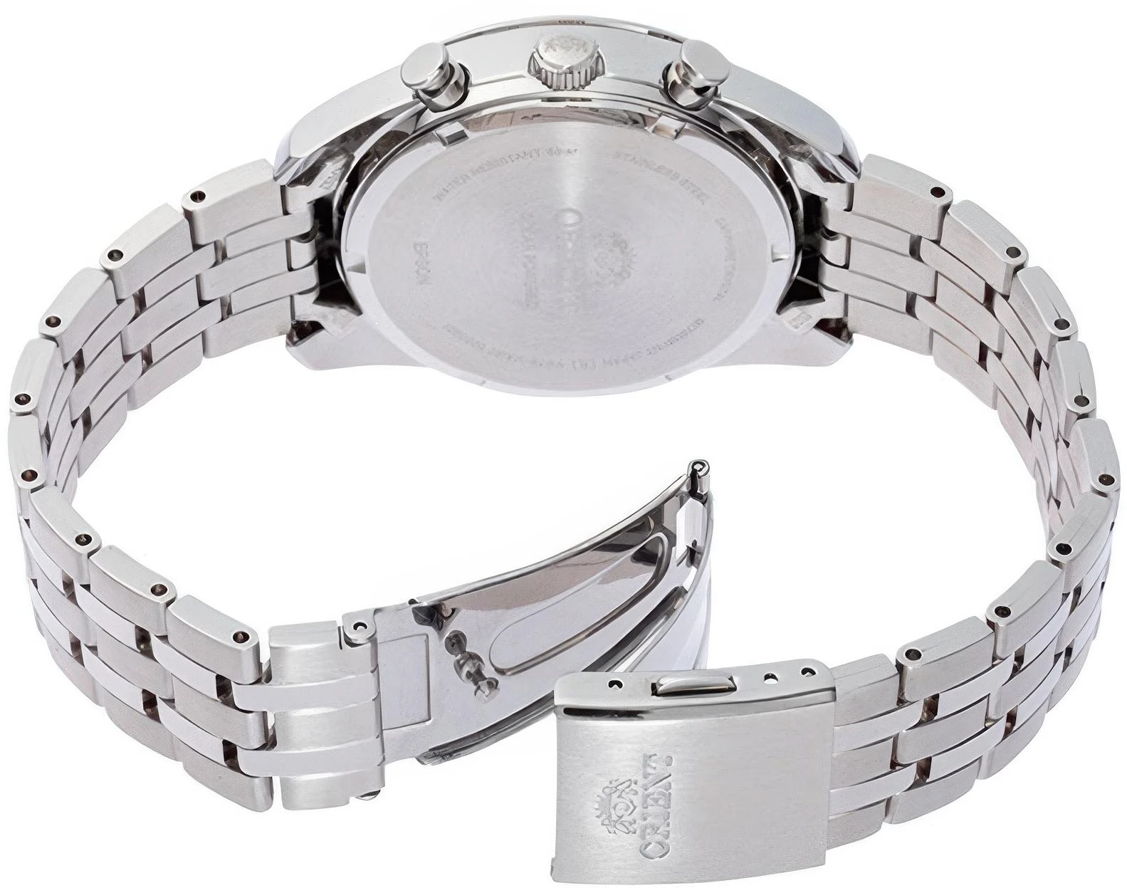 Мужские наручные часы Orient Contemporary RA-TX0305S. Точный кварцевый механизм с аналоговой индикацией. Браслет из нержавеющей стали. Функция хронографа. Солнечная батарейка. Солнечная подзаряжающаяся батарейка обеспечивает питание часов для работы. Браслет из нержавеющей стали. Сапфировое стекло. Искусственно изготовленное стекло с высокой прочностью и устойчивостью к царапинам. На циферблате отображается текущее число месяца. Часы являются водонепроницаемыми до 5 Бар. Цвет циферблата: Серебристый. Цвет корпуса: Белый. Цвет корпуса: Черный. На стрелки и отметки нанесен светонакопительный состав, благодаря этому считывать информацию с циферблата возможно и в темноте. Высота (с ушками): 48 мм. Толщина: 11 мм. Гарантия: 2 года.