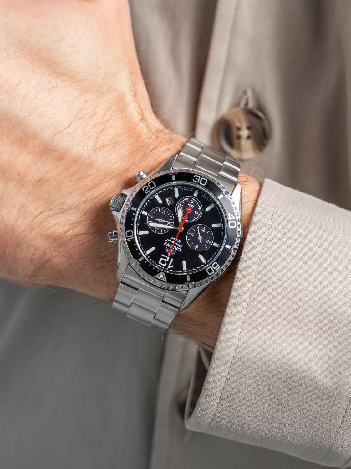 Мужские наручные часы Orient Sporty RA-TX0202B. Точный кварцевый механизм с аналоговой индикацией. Браслет из нержавеющей стали. Функция хронографа. Солнечная батарейка. Солнечная подзаряжающаяся батарейка обеспечивает питание часов для работы. Отображение времени возможно в 12-часовом или 24-часовом формате. Браслет из нержавеющей стали. Прочное, устойчивое к царапинам минеральное стекло защищает часы от повреждений. На циферблате отображается текущее число месяца. Часы являются водонепроницаемыми до 20 Бар. Цвет циферблата: Серебристый. Цвет корпуса: Черный. На стрелки и отметки нанесен светонакопительный состав, благодаря этому считывать информацию с циферблата возможно и в темноте. Толщина: 7 мм. Гарантия: 2 года.