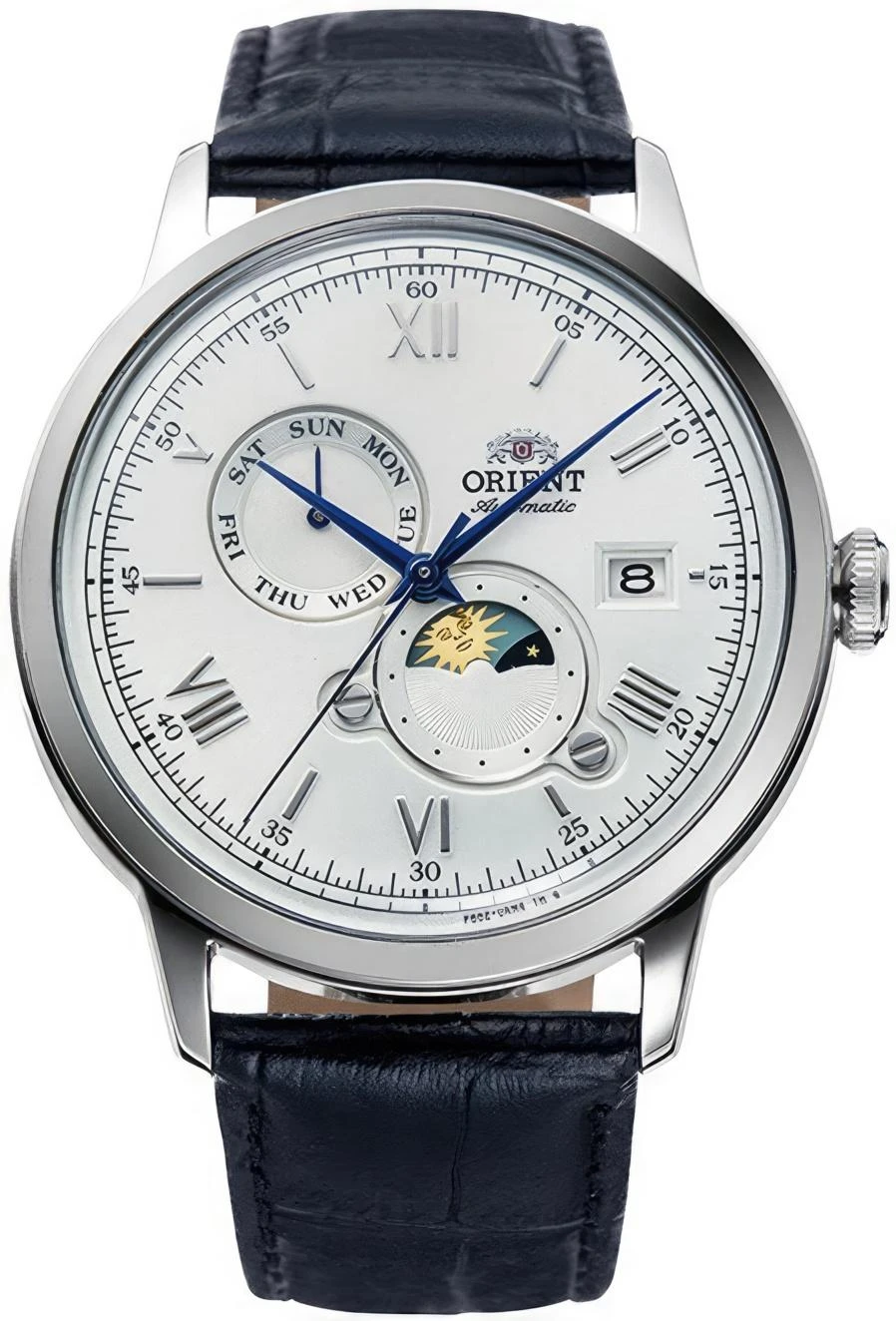 Мужские наручные часы Orient Sun & Moon Classic RA-AK0802S. Механические с автоподзаводом. Пружина механизма заводится автоматически благодаря естественным движениям владельца в процессе ежедневной носки часов. Корпус изготовлен из высококачественной нержавеющей стали 316L с высокими антикоррозийными свойствами. На циферблате отображается текущее число месяца и день недели. Ремешок изготовлен из кожи. Сапфировое стекло. Искусственно изготовленное стекло с высокой прочностью и устойчивостью к царапинам. Часы являются водонепроницаемыми до 3 Бар. Цвет корпуса: Серебристый. Цвет циферблата: Белый. Ширина (с заводной головкой): 42мм. Толщина: 10мм. Гарантия: 2 года. Другие наименования модели: RA-AK0802S10B.