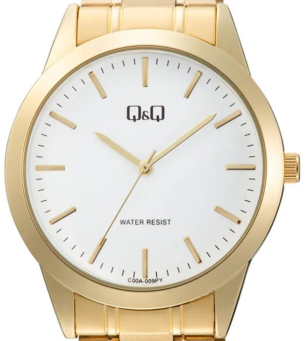 Мужские наручные часы Q&Q Attractive C00AJ009Y. Точный кварцевый механизм с аналоговой индикацией. Браслет из нержавеющей стали. Браслет из нержавеющей стали. Прочное, устойчивое к царапинам минеральное стекло защищает часы от повреждений. Часы являются водонепроницаемыми до 3 Бар. Цвет циферблата: Желтое золото. Цвет корпуса: Белый. Толщина: 8 мм. Гарантия: 1 год.