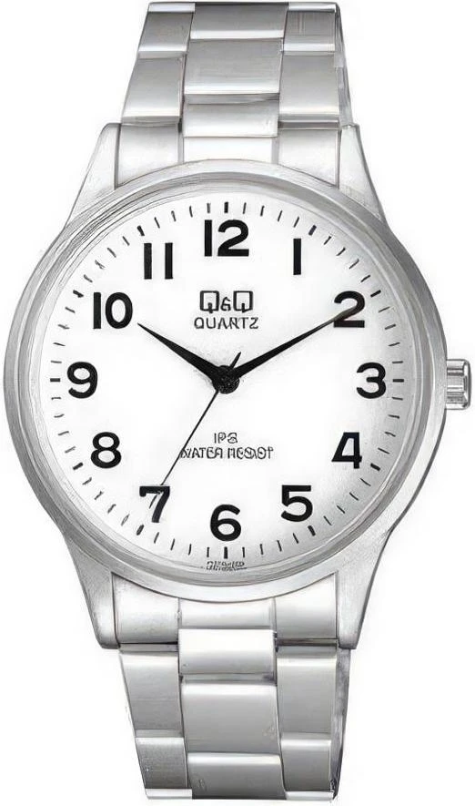 Классические мужские часы с арабскими цифрами на циферблате, оснащенные прочным стальным браслетом.