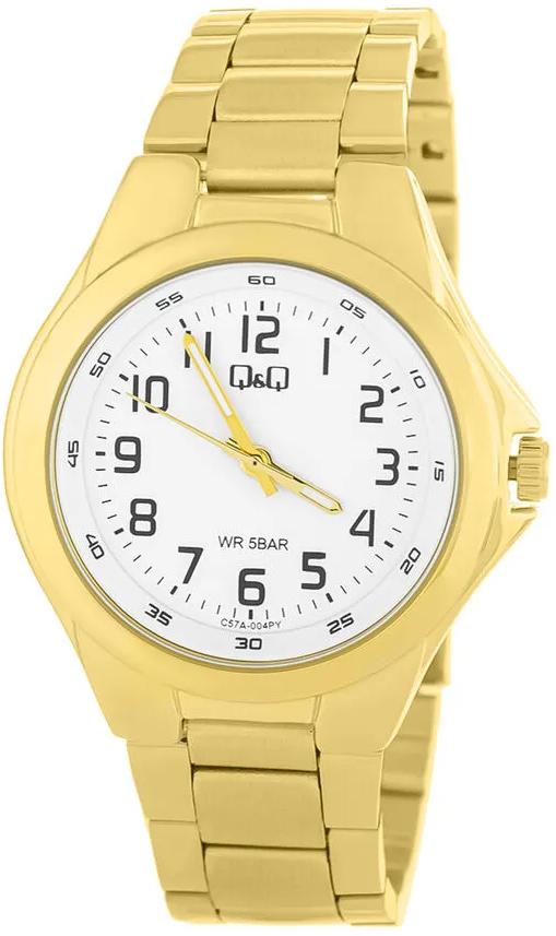 . Точный кварцевый механизм с аналоговой индикацией. Браслет из нержавеющей стали. Латунный браслет. Прочное, устойчивое к царапинам минеральное стекло защищает часы от повреждений. Часы являются водонепроницаемыми до 5 Бар. Цвет циферблата: Желтое золото. Цвет корпуса: Белый. Светодиодная подсветка. Толщина: 10 мм. Гарантия: 1 год.