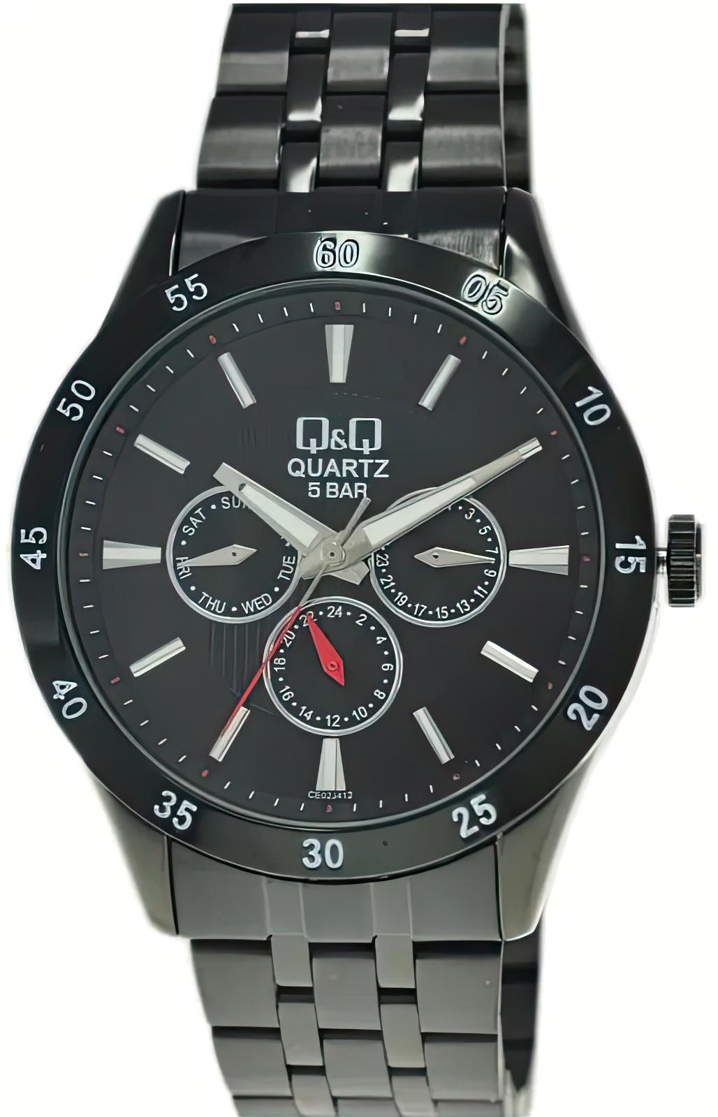 Мужские наручные часы Q&Q Attractive CE02J412Y. Точный кварцевый механизм с аналоговой индикацией. Корпус изготовлен из высококачественной нержавеющей стали 316L с высокими антикоррозийными свойствами. На стрелки и отметки нанесен светонакопительный состав, благодаря этому считывать информацию с циферблата возможно и в темноте. На циферблате отображается текущее число месяца и день недели. Браслет из нержавеющей стали. Прочное, устойчивое к царапинам минеральное стекло защищает часы от повреждений. Часы являются водонепроницаемыми до 5 Бар. Цвет корпуса: Черный. Цвет циферблата: Черный. Ширина (с заводной головкой): 42мм. Толщина: 10мм. Гарантия: 1 год.