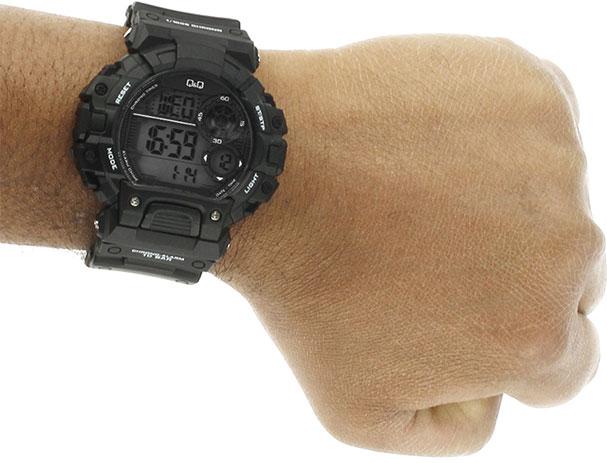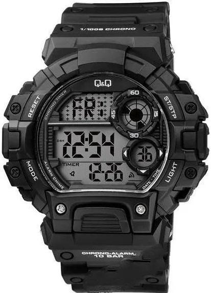 Мужские наручные часы Q&Q Attractive M144J001Y. Точный кварцевый механизм с цифровой индикацией. Полимерный корпус надежно защищает часы от механических повреждений. Светодиодная подсветка. На циферблате отображается текущее число, месяц и день недели. Функция хронографа. Полимерный ремешок. Натуральный полимерный материал является идеальным для изготовления ремешка благодаря своей чрезвычайной прочности и гибкости. Прочное, устойчивое к царапинам минеральное стекло защищает часы от повреждений.Часы являются водонепроницаемыми до 10 Бар. Цвет корпуса: Черный. Цвет циферблата: Серый. Ширина (с заводной головкой): 47мм. Толщина: 17мм. Гарантия: 1 год.