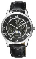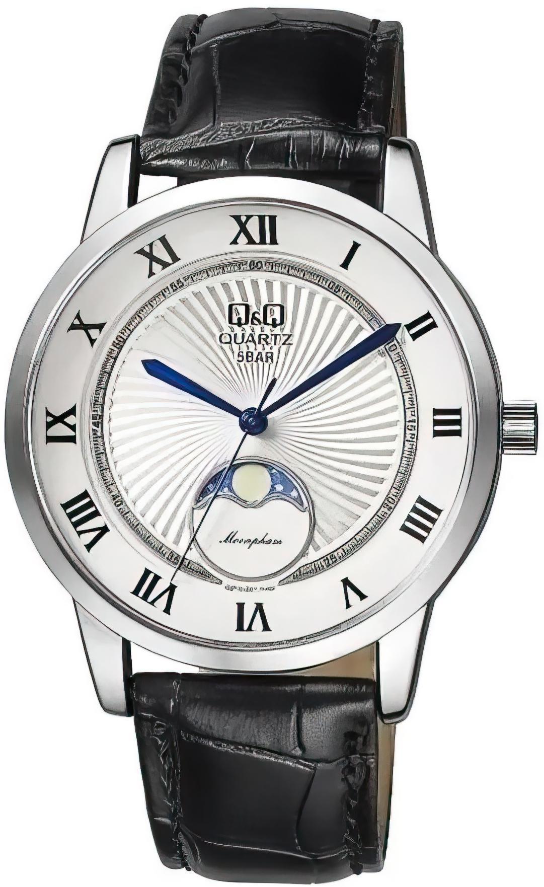 Точный кварцевый механизм Miyota калибр 6P24. • Центральная секундная стрелка. • Индикатор фазы Луны. • Точность хода: не хуже +/-20 секунд в месяц. Частота: 32,768Hz • Элемент питания №364 (SR621SW). • Срок службы батареи 3 года.• Минеральное стекло устойчивое к возникновению царапин. • Корпус из латуни со стойким PVD покрытием. • Водозащита до 5 АТМ. • Кожаный ремешок. • Классическая застёжка ремешка.