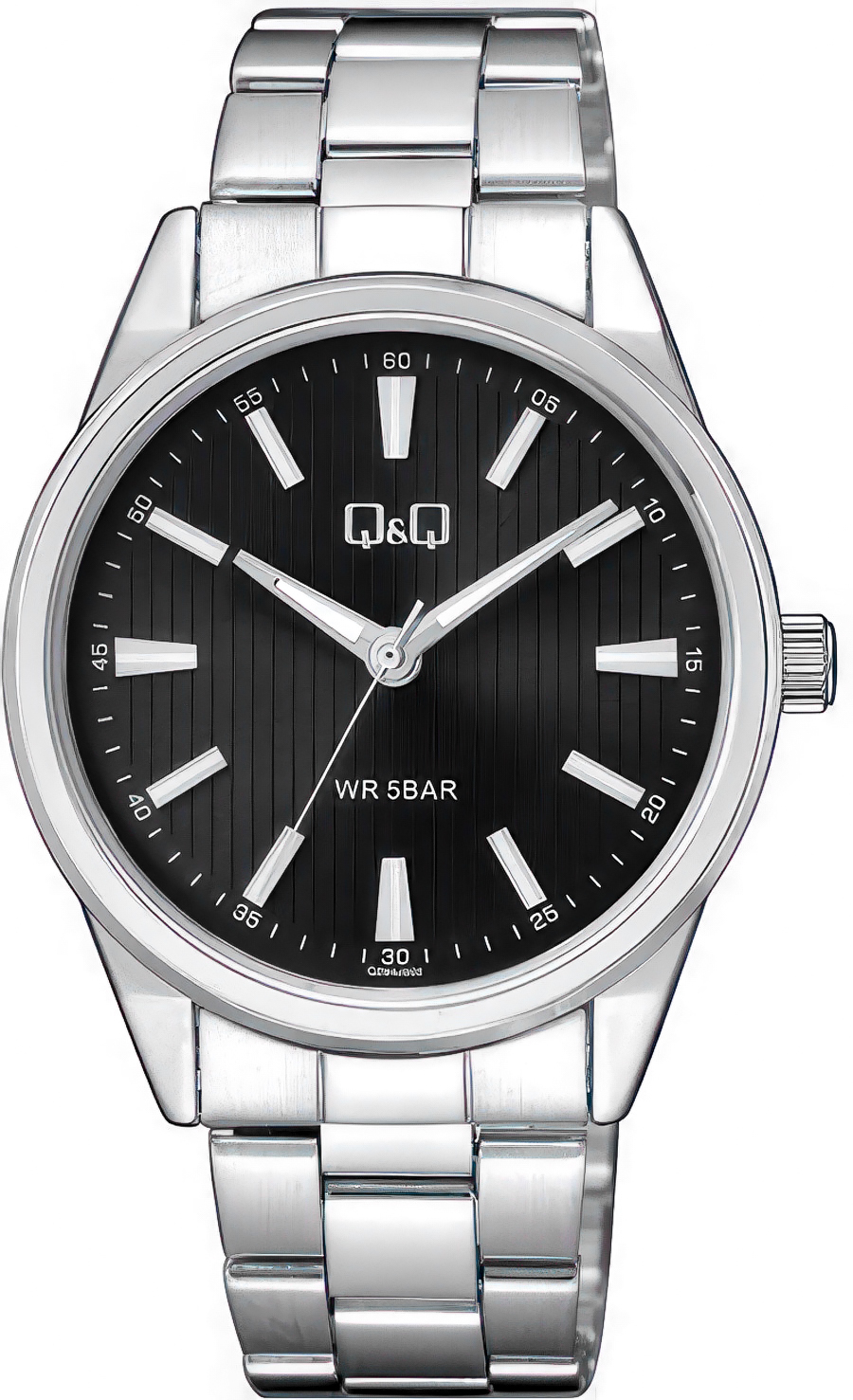 Мужские наручные часы Q&Q Attractive QZ94J202Y. Точный кварцевый механизм с аналоговой индикацией. Корпус изготовлен из высококачественной часовой латуни с высокими антикоррозийными свойствами. На стрелки и отметки нанесен светонакопительный состав, благодаря этому считывать информацию с циферблата возможно и в темноте. Браслет из нержавеющей стали. Прочное, устойчивое к царапинам минеральное стекло защищает часы от повреждений.Часы являются водонепроницаемыми до 5 Бар. Цвет корпуса: Серебристый. Цвет циферблата: Черный. Ширина (с заводной головкой): 40мм. Толщина: 9мм. Гарантия: 1 год.