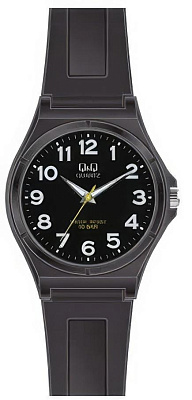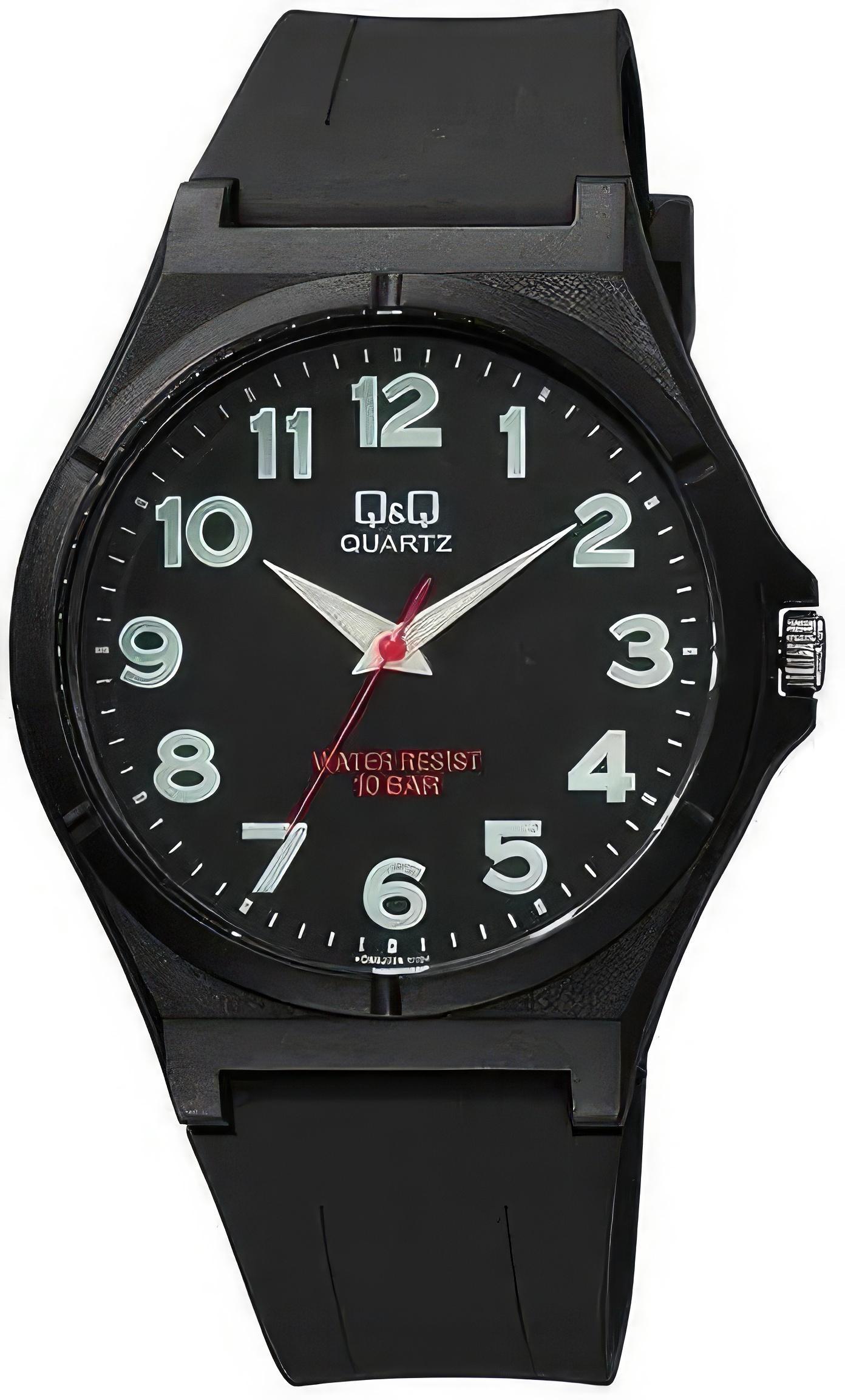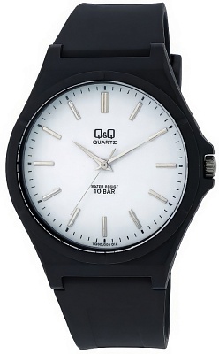 Мужские наручные часы Q&Q Attractive VQ66J024Y. Точный кварцевый механизм с аналоговой индикацией. Полимерный корпус надежно защищает часы от механических повреждений. На стрелки и отметки нанесен светонакопительный состав, благодаря этому считывать информацию с циферблата возможно и в темноте. Полимерный ремешок. Натуральный полимерный материал является идеальным для изготовления ремешка благодаря своей чрезвычайной прочности и гибкости. Органическое стекло. Часы являются водонепроницаемыми до 10 Бар. Цвет корпуса: Черный. Ширина (с заводной головкой): 42мм. Толщина: 10мм. Гарантия: 1 год.