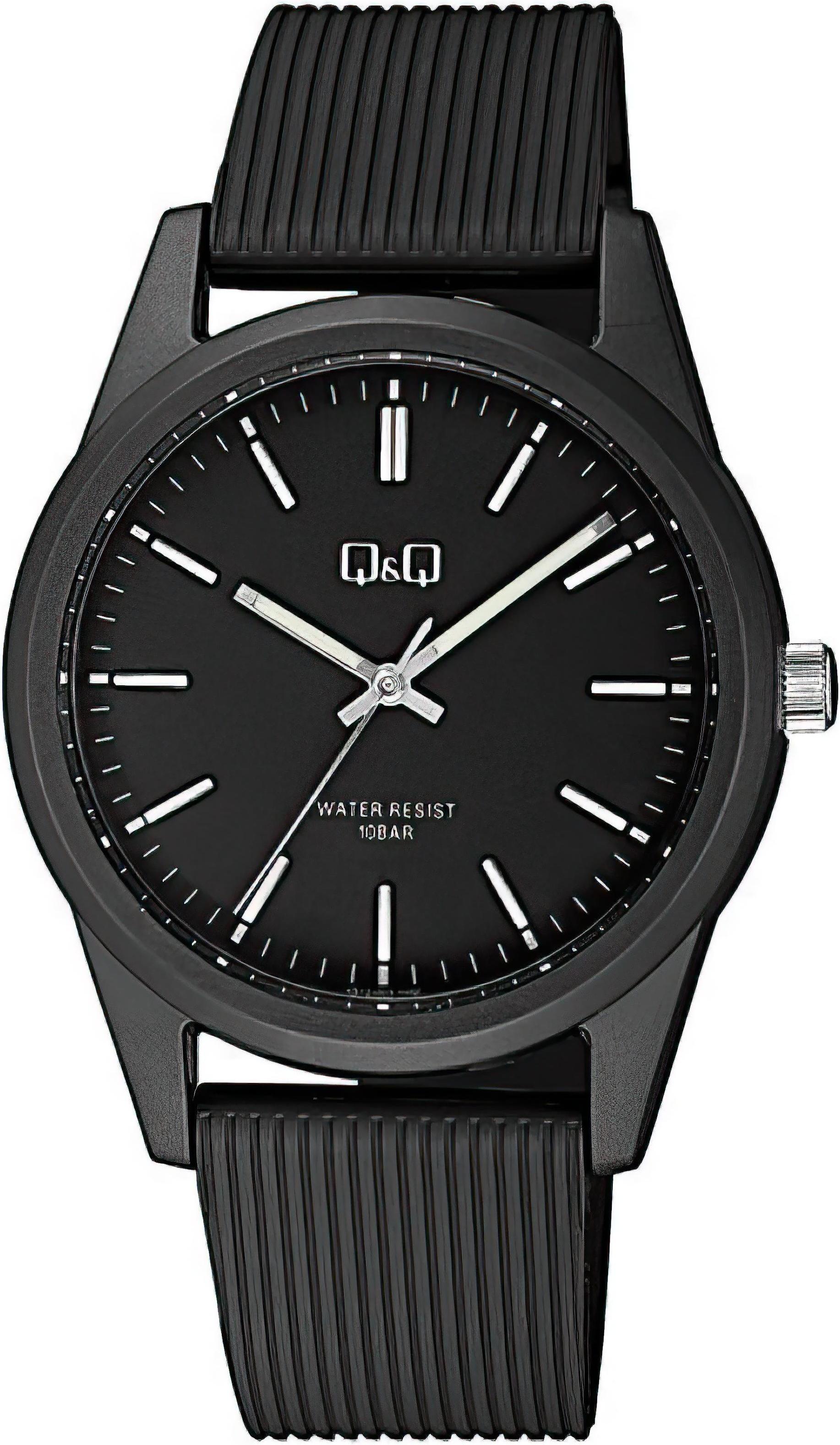 Мужские наручные часы Q&Q Attractive VS12J004Y. Точный кварцевый механизм с аналоговой индикацией. Полимерный корпус надежно защищает часы от механических повреждений. На стрелки и отметки нанесен светонакопительный состав, благодаря этому считывать информацию с циферблата возможно и в темноте. Полимерный ремешок. Натуральный полимерный материал является идеальным для изготовления ремешка благодаря своей чрезвычайной прочности и гибкости. Органическое стекло. Часы являются водонепроницаемыми до 10 Бар. Цвет корпуса: Черный. Цвет циферблата: Черный. Ширина (с заводной головкой): 40мм. Толщина: 10мм. Гарантия: 1 год.