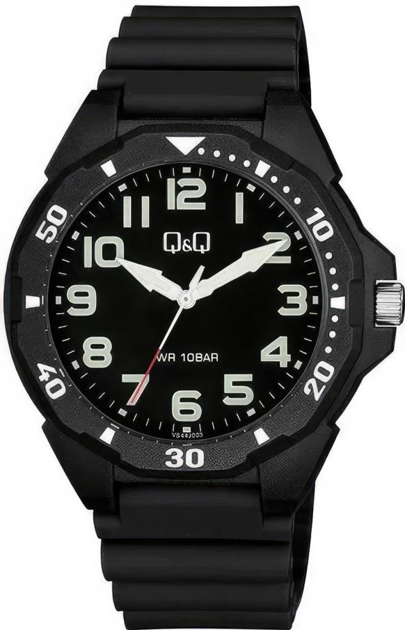 Мужские наручные часы Q&Q Attractive VS44J003Y. Точный кварцевый механизм. Полимерный корпус надежно защищает часы от механических повреждений. На стрелки и отметки нанесен светонакопительный состав, благодаря этому считывать информацию с циферблата возможно и в темноте. Полимерный ремешок. Натуральный полимерный материал является идеальным для изготовления ремешка благодаря своей чрезвычайной прочности и гибкости. Органическое стекло. Часы являются водонепроницаемыми до 10 Бар. Ширина (с заводной головкой): 43мм. Толщина: 12мм. Гарантия: 1 год.