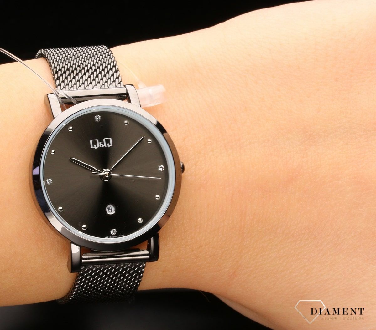 Женские наручные часы Q&Q Attractive Women A419J402Y. Точный кварцевый механизм с аналоговой индикацией. Корпус изготовлен из высококачественной часовой латуни с высокими антикоррозийными свойствами. На циферблате отображается текущее число месяца. Браслет из нержавеющей стали. Прочное, устойчивое к царапинам минеральное стекло защищает часы от повреждений.Часы являются водонепроницаемыми до 3 Бар. Цвет корпуса: Серый. Цвет циферблата: Черный. Ширина (с заводной головкой): 38мм. Толщина: 8мм. Гарантия: 1 год.