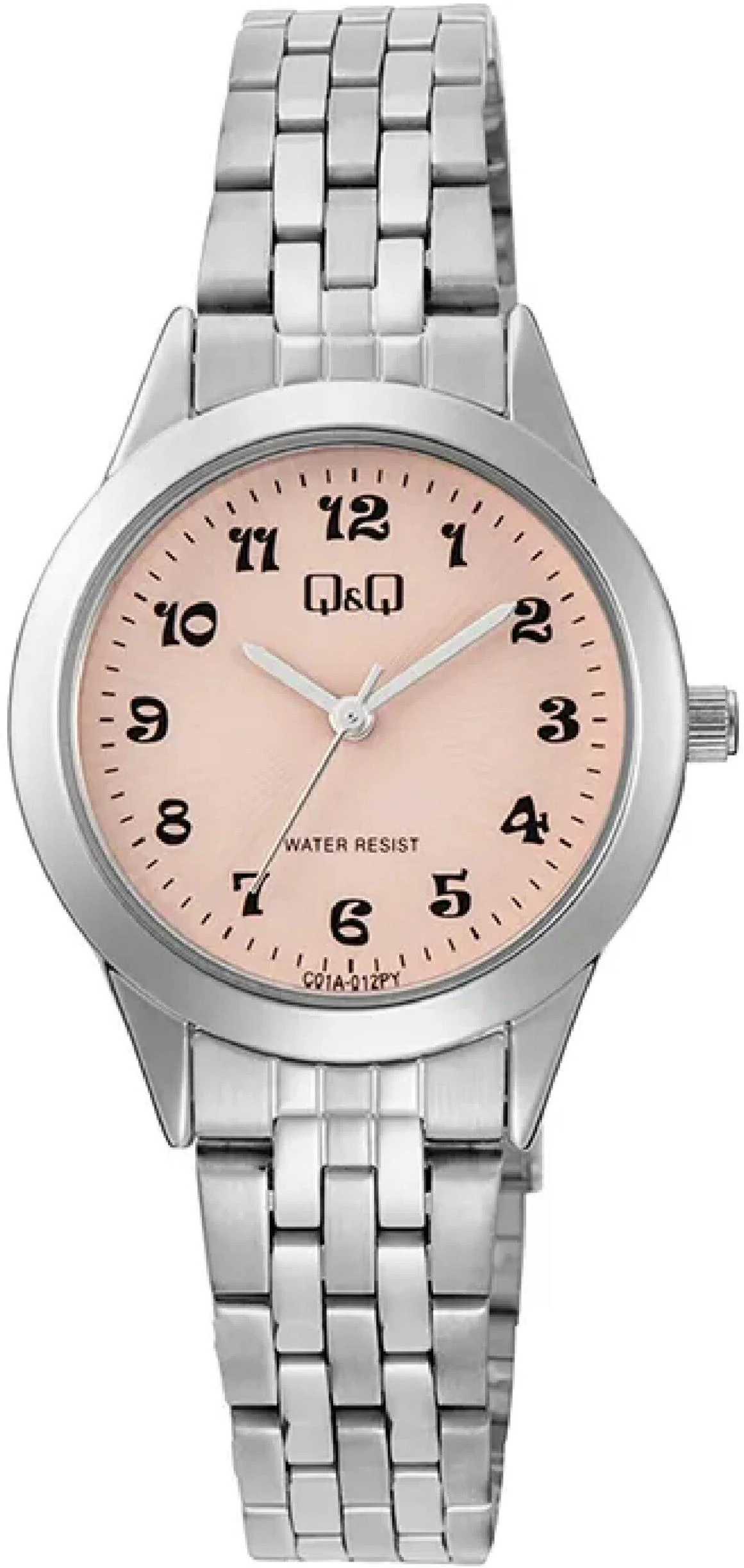 Женские наручные часы Q&Q Attractive Women C01AJ012Y. Точный кварцевый механизм с аналоговой индикацией. Браслет из нержавеющей стали. Браслет из нержавеющей стали. Прочное, устойчивое к царапинам минеральное стекло защищает часы от повреждений. Часы являются водонепроницаемыми до 3 Бар. Цвет циферблата: Серебристый. Цвет корпуса: Розовый. Толщина: 9 мм. Гарантия: 1 год.