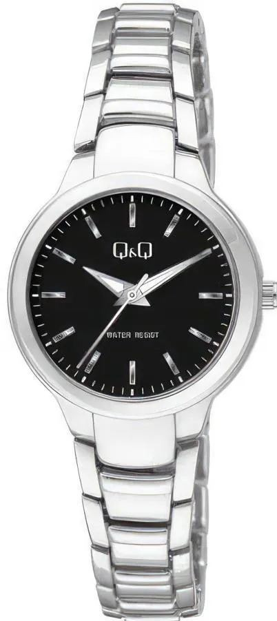 Женские наручные часы Q&Q Attractive Women F499J802Y. Точный кварцевый механизм с аналоговой индикацией. Корпус изготовлен из высококачественной часовой латуни с высокими антикоррозийными свойствами. На стрелки и отметки нанесен светонакопительный состав, благодаря этому считывать информацию с циферблата возможно и в темноте. Браслет из нержавеющей стали. Прочное, устойчивое к царапинам минеральное стекло защищает часы от повреждений.Часы являются водонепроницаемыми до 3 Бар. Цвет корпуса: Серебристый. Цвет циферблата: Черный. Ширина (с заводной головкой): 34мм. Толщина: 8мм. Гарантия: 1 год.