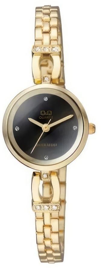 Женские наручные часы Q&Q Attractive Women F619J002Y. Точный кварцевый механизм с аналоговой индикацией. Корпус изготовлен из высококачественной часовой латуни с высокими антикоррозийными свойствами. Браслет из нержавеющей стали. Прочное, устойчивое к царапинам минеральное стекло защищает часы от повреждений.Часы являются водонепроницаемыми до 3 Бар. Цвет корпуса: Желтое золото. Цвет циферблата: Черный. Ширина (с заводной головкой): 32мм. Толщина: 7мм. Гарантия: 1 год.