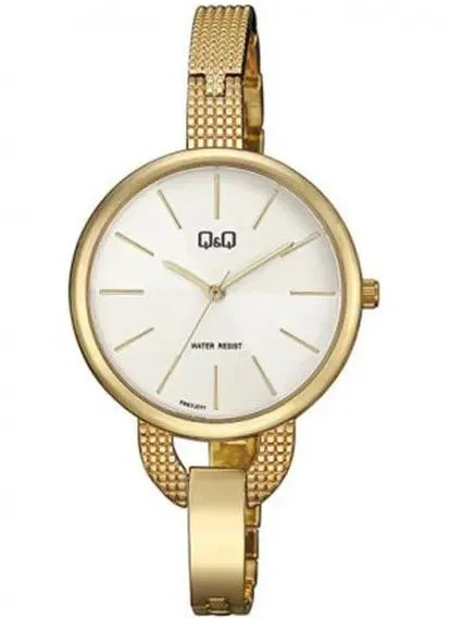 Женские наручные часы Q&Q Attractive Women F667J011Y. Точный кварцевый механизм с аналоговой индикацией. Корпус изготовлен из высококачественной нержавеющей стали 316L с высокими антикоррозийными свойствами. Браслет из нержавеющей стали. Прочное, устойчивое к царапинам минеральное стекло защищает часы от повреждений. Часы являются водонепроницаемыми до 3 Бар. Цвет корпуса: Желтое золото. Цвет циферблата: Белый. Гарантия: 1 год.