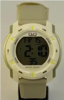Женские наручные часы Q&Q Attractive Women M171J810Y. Точный кварцевый механизм с цифровой индикацией. Полимерный корпус надежно защищает часы от механических повреждений. Светодиодная подсветка. На циферблате отображается текущее число месяца и день недели. Функция хронографа. Полимерный ремешок. Натуральный полимерный материал является идеальным для изготовления ремешка благодаря своей чрезвычайной прочности и гибкости. Прочное, устойчивое к царапинам минеральное стекло защищает часы от повреждений.Часы являются водонепроницаемыми до 10 Бар. Цвет корпуса: Двухцветный. Цвет циферблата: Зеленый. Ширина (с заводной головкой): 44мм. Толщина: 13мм. Гарантия: 1 год.