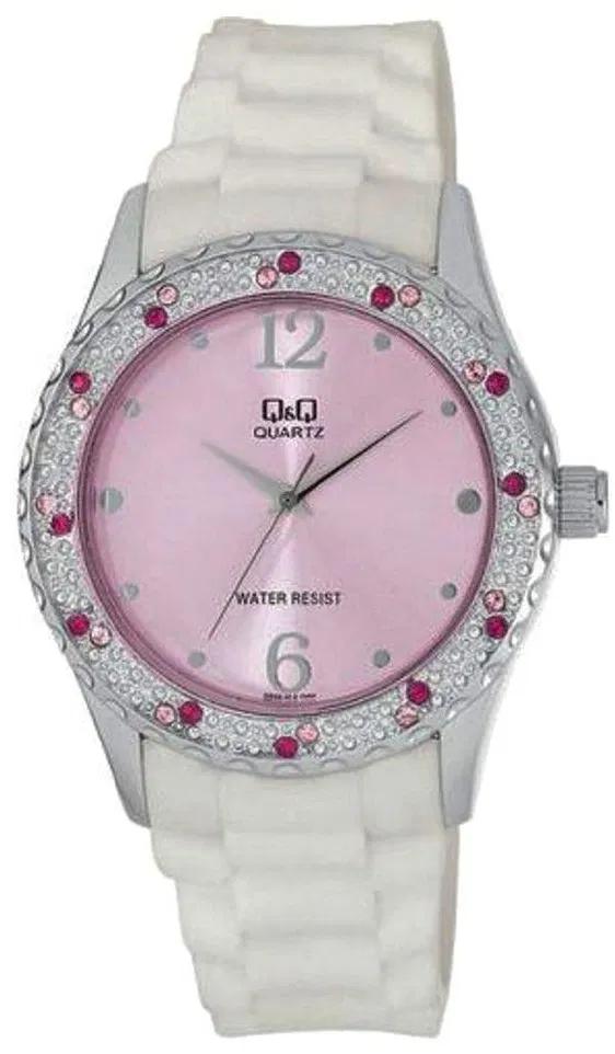 Женские наручные часы Q&Q Attractive Women Q833J301Y. Точный кварцевый механизм с аналоговой индикацией. Корпус изготовлен из высококачественной часовой латуни с высокими антикоррозийными свойствами. Ремешок изготовлен из каучука. Прочное, устойчивое к царапинам минеральное стекло защищает часы от повреждений.Часы являются водонепроницаемыми до 3 Бар. Цвет корпуса: Серебристый. Цвет циферблата: Розовый. Ширина (с заводной головкой): 38мм. Толщина: 9мм. Гарантия: 1 год.