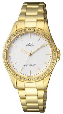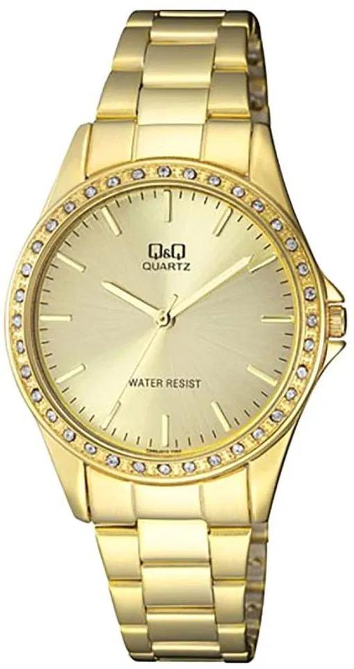 Женские наручные часы Q&Q Attractive Women Q985J010Y. Точный кварцевый механизм с аналоговой индикацией. Корпус изготовлен из высококачественной часовой латуни с высокими антикоррозийными свойствами. Браслет из нержавеющей стали. Прочное, устойчивое к царапинам минеральное стекло защищает часы от повреждений.Часы являются водонепроницаемыми до 3 Бар. Цвет корпуса: Желтое золото. Цвет циферблата: Золотистый. Ширина (с заводной головкой): 36мм. Толщина: 8мм. Гарантия: 1 год.