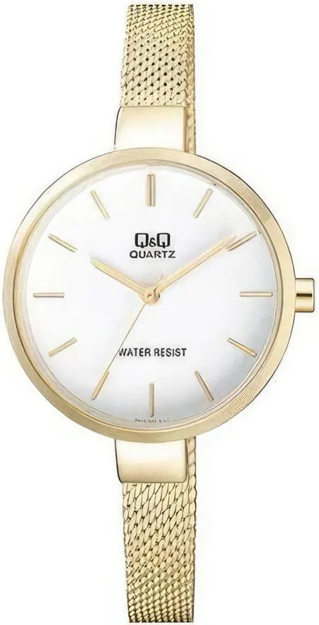 Женские наручные часы Q&Q Attractive Women QA15J001Y. Точный кварцевый механизм с аналоговой индикацией. Корпус изготовлен из высококачественной часовой латуни с высокими антикоррозийными свойствами. Браслет из нержавеющей стали. Прочное, устойчивое к царапинам минеральное стекло защищает часы от повреждений.Часы являются водонепроницаемыми до 3 Бар. Цвет корпуса: Желтое золото. Цвет циферблата: Белый. Ширина (с заводной головкой): 34мм. Толщина: 6мм. Гарантия: 1 год.