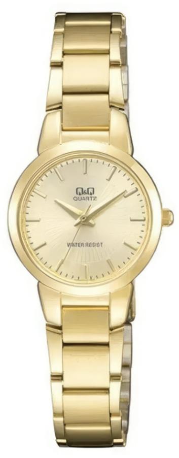 Женские наручные часы Q&Q Attractive Women QA43J010Y. Точный кварцевый механизм с аналоговой индикацией. Корпус изготовлен из высококачественной часовой латуни с высокими антикоррозийными свойствами. Браслет из нержавеющей стали. Прочное, устойчивое к царапинам минеральное стекло защищает часы от повреждений.Часы являются водонепроницаемыми до 3 Бар. Цвет корпуса: Желтое золото. Цвет циферблата: Золотистый. Ширина (с заводной головкой): 34мм. Толщина: 8мм. Гарантия: 1 год.