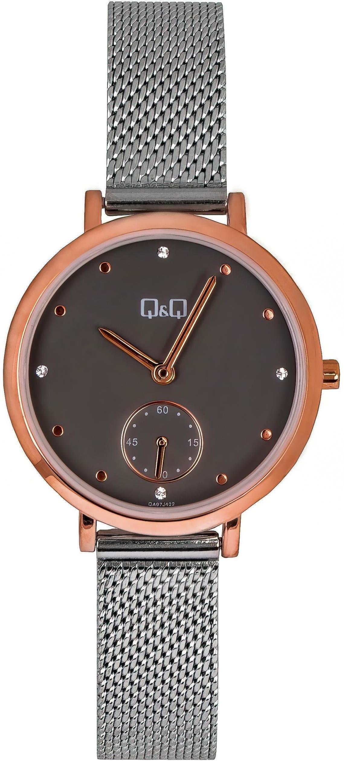 Женские наручные часы Q&Q Attractive Women QA97J422Y. Точный кварцевый механизм с аналоговой индикацией. Корпус изготовлен из высококачественной часовой латуни с высокими антикоррозийными свойствами. Браслет из нержавеющей стали. Прочное, устойчивое к царапинам минеральное стекло защищает часы от повреждений.Часы являются водонепроницаемыми до 3 Бар. Цвет корпуса: Розовое золото. Цвет циферблата: Серый. Ширина (с заводной головкой): 34мм. Толщина: 8мм. Гарантия: 1 год.