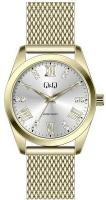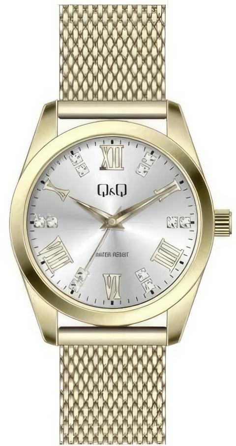 Женские наручные часы Q&Q Attractive Women QB05J802Y. Точный кварцевый механизм с аналоговой индикацией. Корпус изготовлен из высококачественной часовой латуни с высокими антикоррозийными свойствами. Браслет из нержавеющей стали. Прочное, устойчивое к царапинам минеральное стекло защищает часы от повреждений.Часы являются водонепроницаемыми до 3 Бар. Цвет корпуса: Желтое золото. Цвет циферблата: Серебристый. Ширина (с заводной головкой): 36мм. Толщина: 8мм. Гарантия: 1 год.