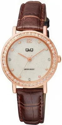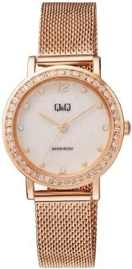 Женские наручные часы Q&Q Attractive Women QB45J011Y. Точный кварцевый механизм с аналоговой индикацией. Корпус изготовлен из высококачественной часовой латуни с высокими антикоррозийными свойствами. Браслет из нержавеющей стали. Прочное, устойчивое к царапинам минеральное стекло защищает часы от повреждений.Часы являются водонепроницаемыми до 3 Бар. Цвет корпуса: Розовое золото. Ширина (с заводной головкой): 36мм. Толщина: 8мм. Гарантия: 1 год.