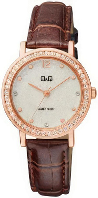 Женские наручные часы Q&Q Attractive Women QB45J301Y. Точный кварцевый механизм с аналоговой индикацией. Корпус изготовлен из высококачественной часовой латуни с высокими антикоррозийными свойствами. Ремешок изготовлен из кожи. Прочное, устойчивое к царапинам минеральное стекло защищает часы от повреждений.Часы являются водонепроницаемыми до 3 Бар. Цвет корпуса: Бежевый. Ширина (с заводной головкой): 34мм. Толщина: 8мм. Гарантия: 1 год.